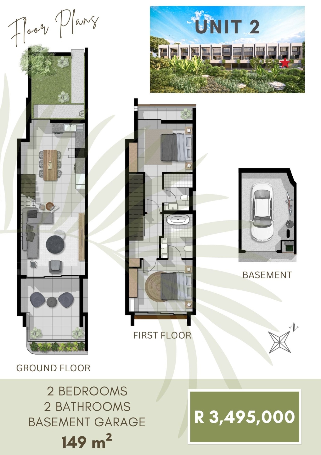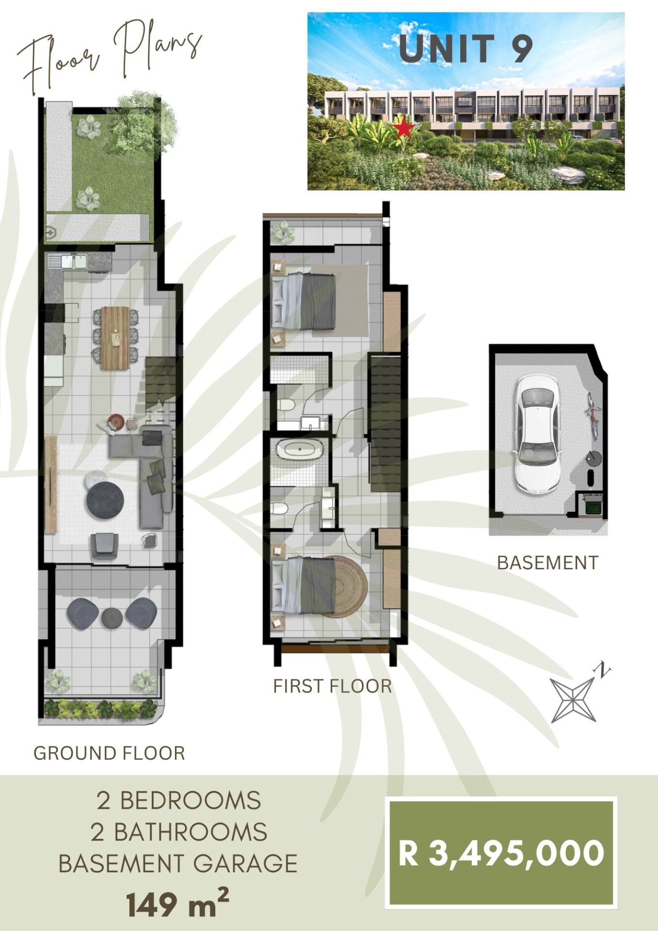 The spacious two-bed, two-bath duplex is 149 Sqm. Each unit has one garage and one basement parking.
