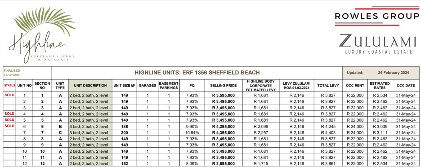 We proudly introduce an exciting new development called Highline within the upmarket Zululami Coastal Estate.