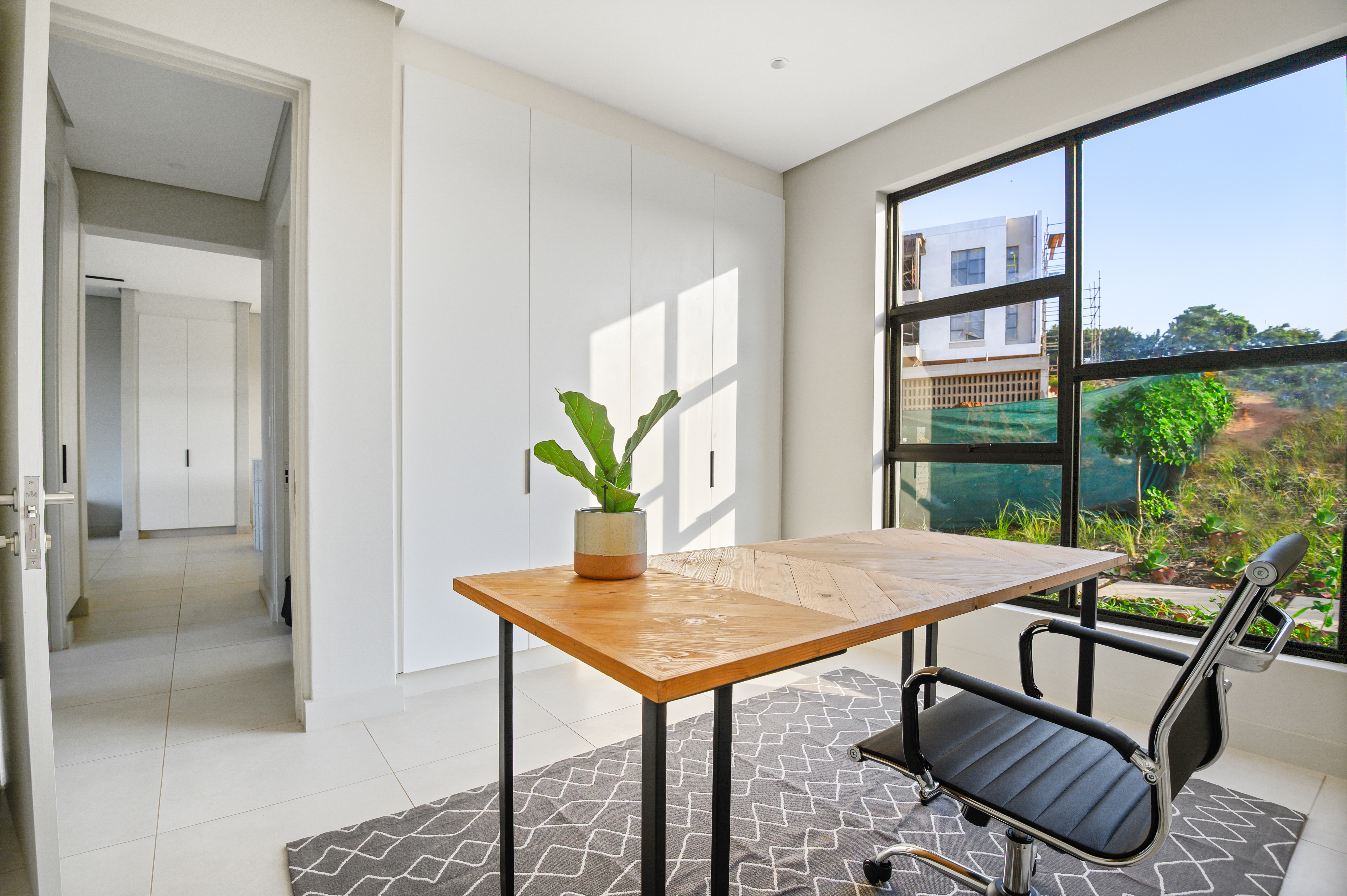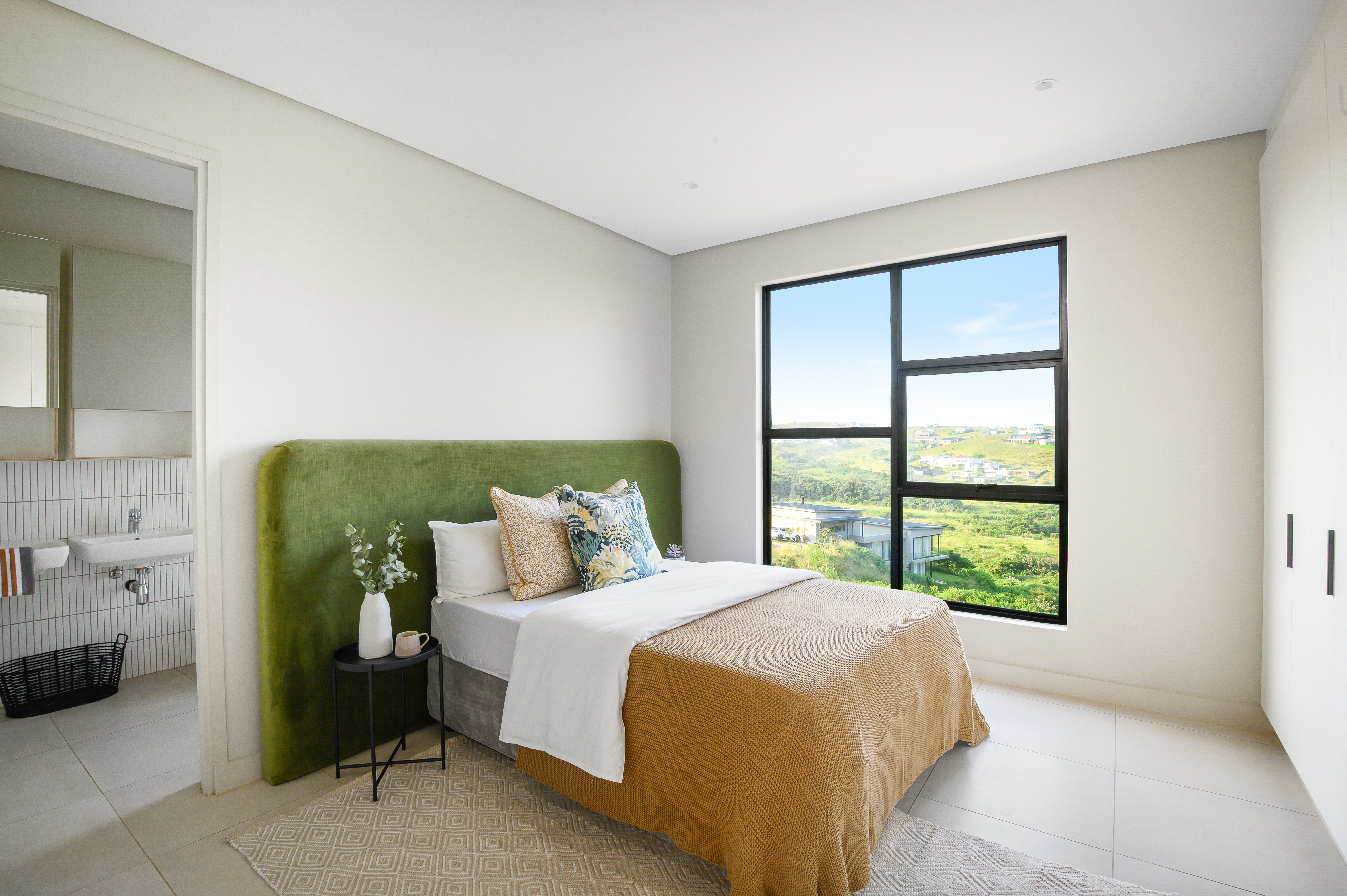 The main bedroom offers plenty of cupboard space and a stylish en-suite bathroom. The second bedroom is spacious and well-designed, with easy access to a modern second bathroom. This unit is equipped with air-conditioning in both bedrooms and the lounge, ensuring comfort all year round.