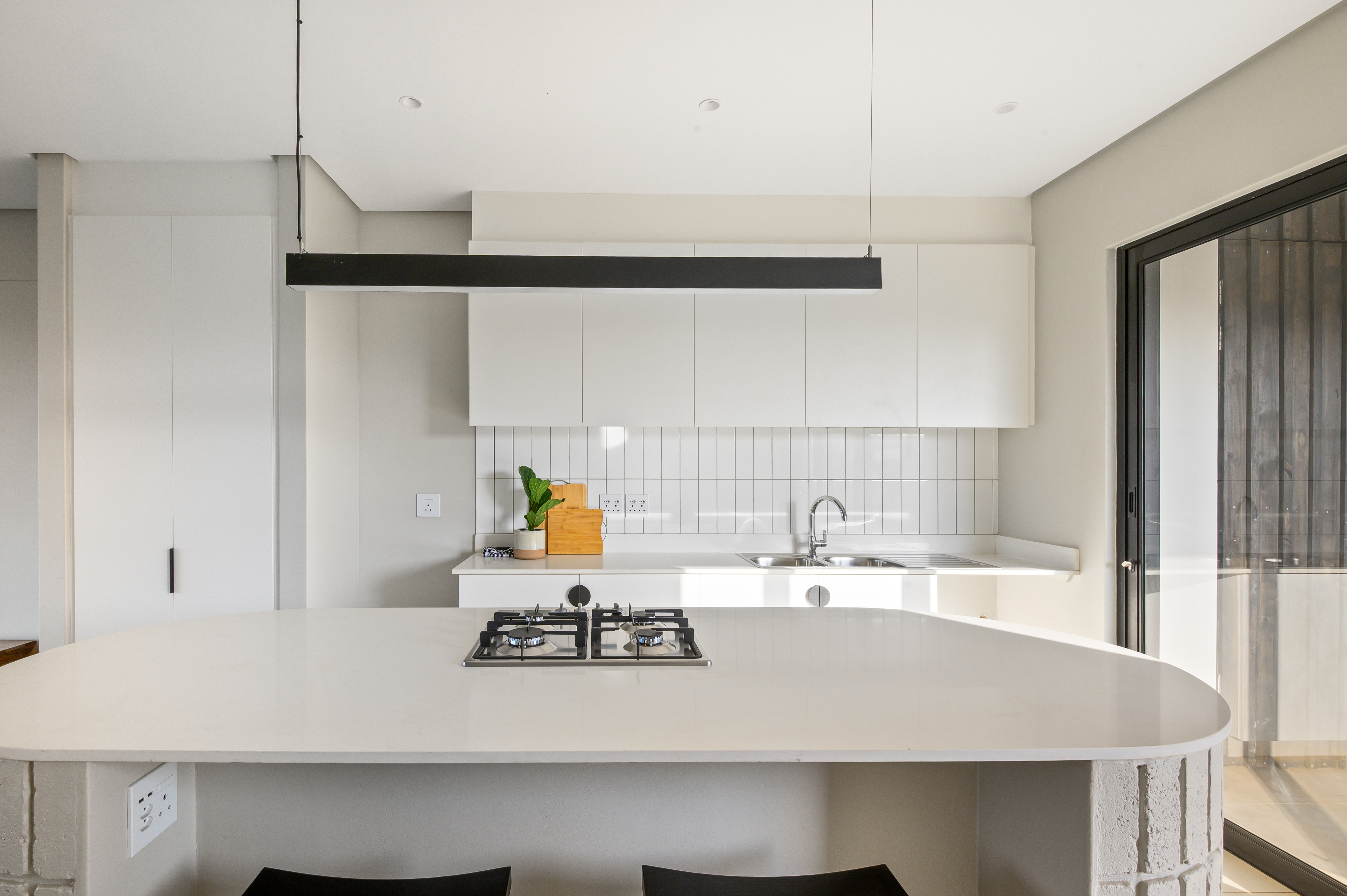 This beautiful 2-bedroom apartment offers modern coastal living at its best. The open-plan kitchen features sleek finishes, quality fittings, and ample cupboard space, flowing seamlessly into the dining and living area – perfect for both relaxing and entertaining. Glass doors open onto a private balcony with stunning sea views, ideal for enjoying your morning coffee or unwinding after a long day.