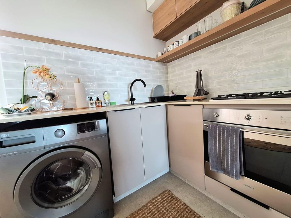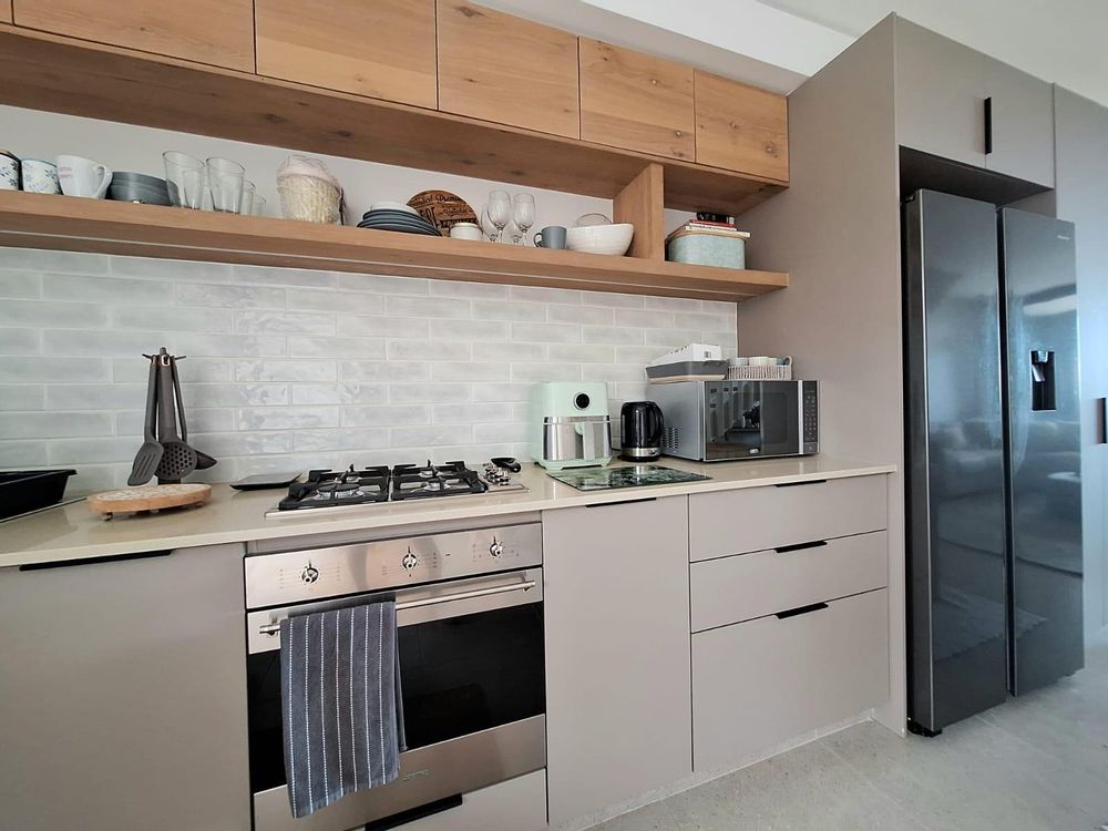 The open-plan kitchen flows into the light-filled living area and out onto a private balcony—an inviting space to relax or entertain. The main bedroom enjoys sea views, creating a peaceful retreat to start and end your day.