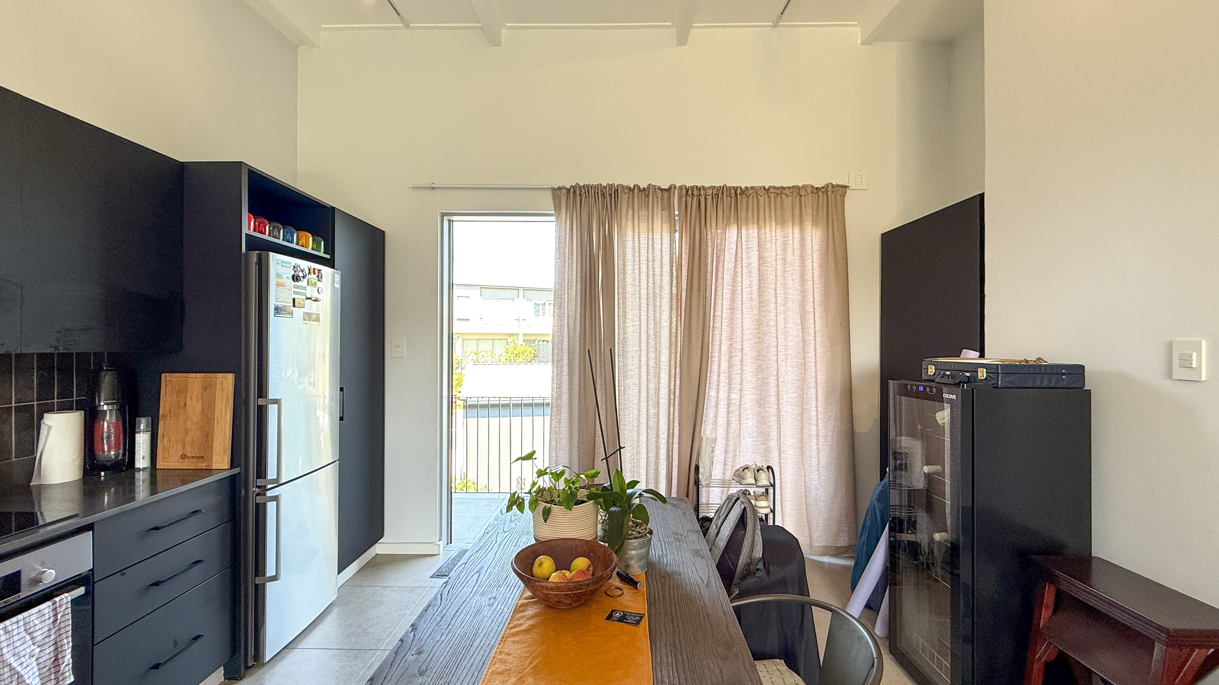 The spacious open-plan living area flows effortlessly onto a covered balcony with tranquil views over the dam, wetlands, and lush coastal forest — the perfect setting to unwind or entertain.