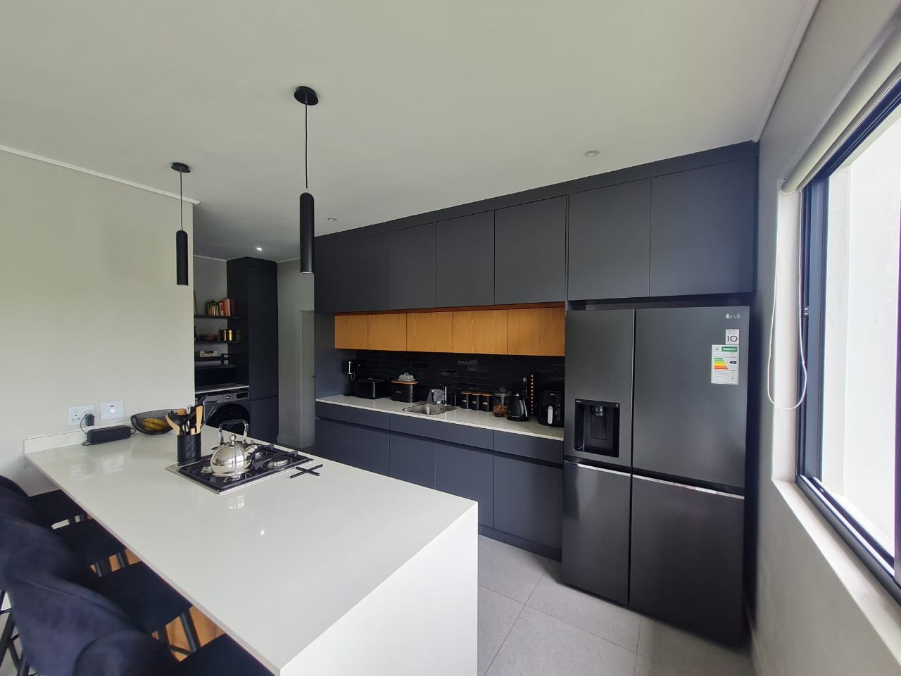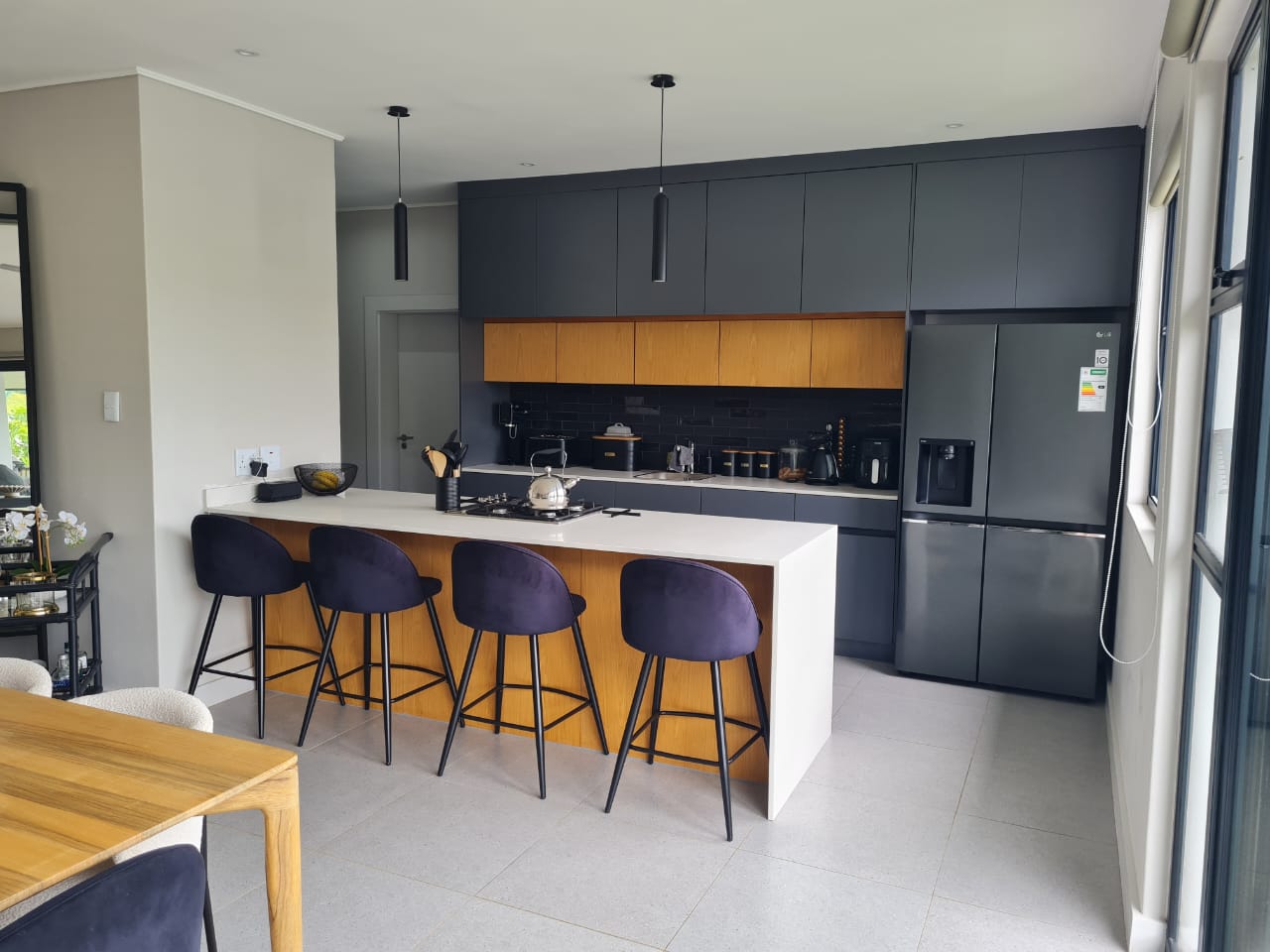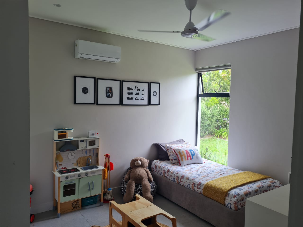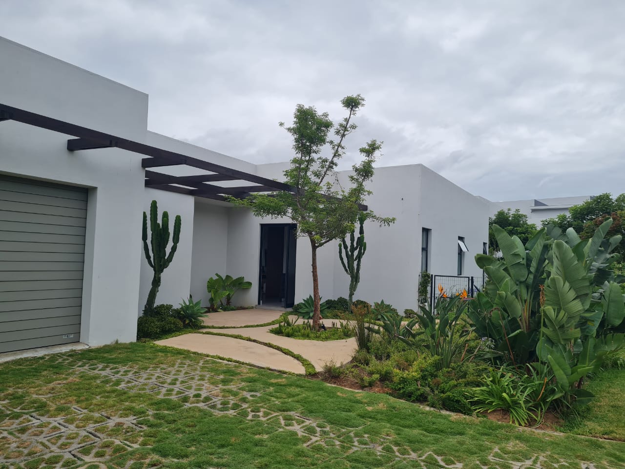 Living spaces open out to a private garden overlooking Zululami’s greenbelt, offering a tranquil natural backdrop and a safe outdoor space for children to play. The home is further enhanced by a solar power system, providing energy efficiency and peace of mind.