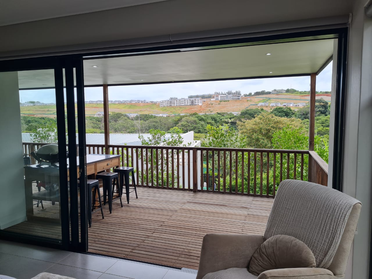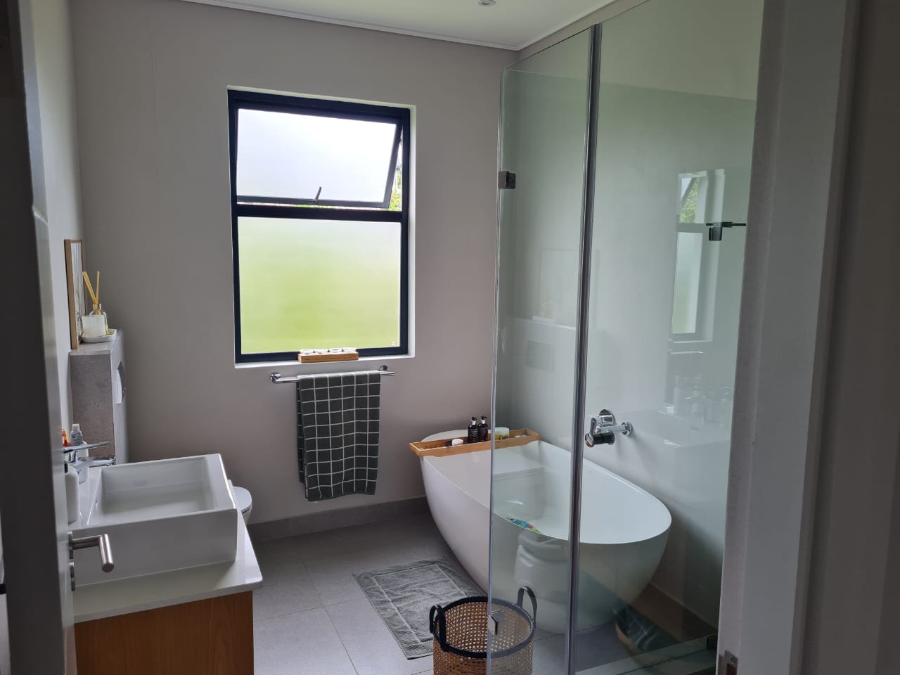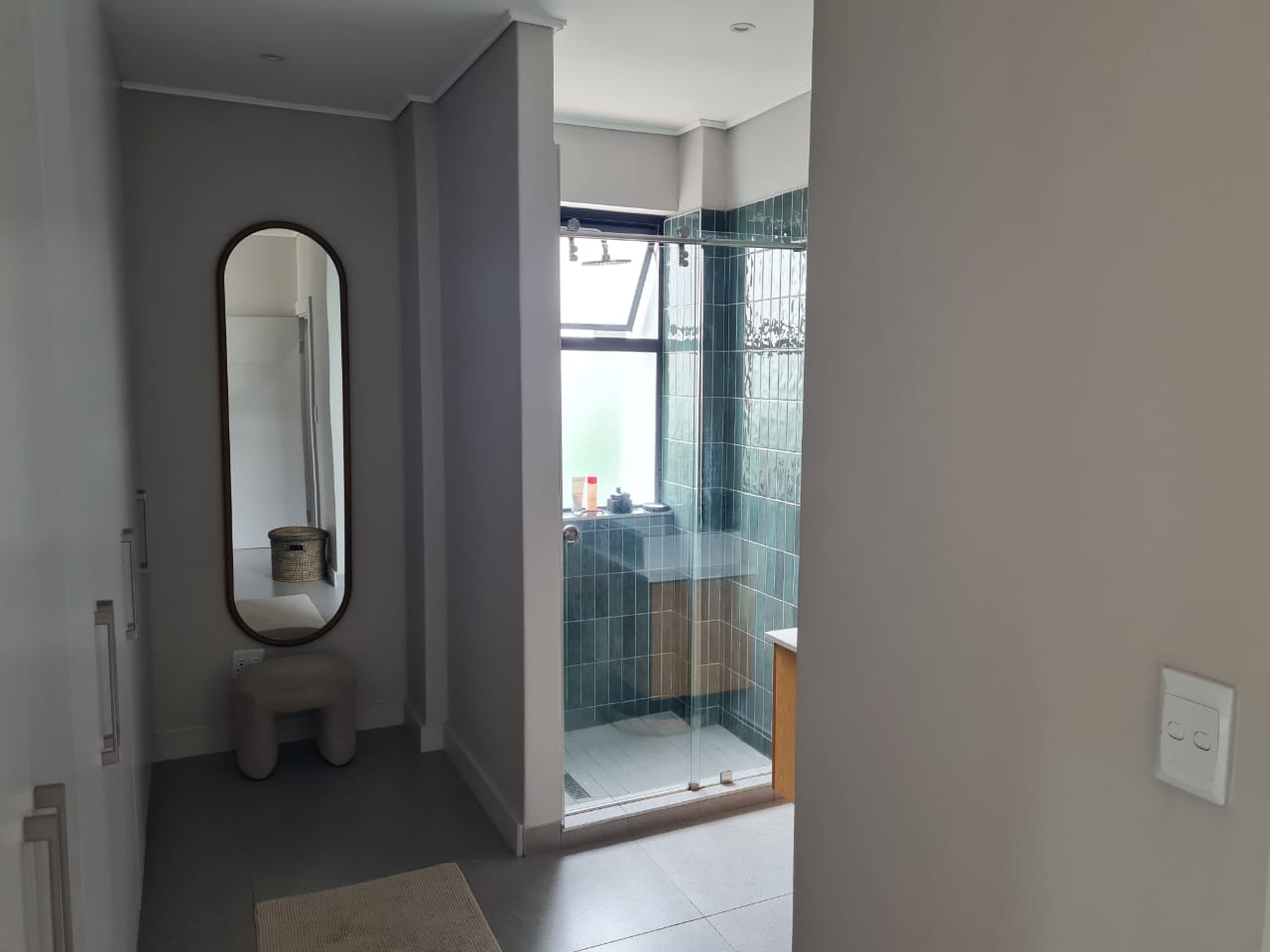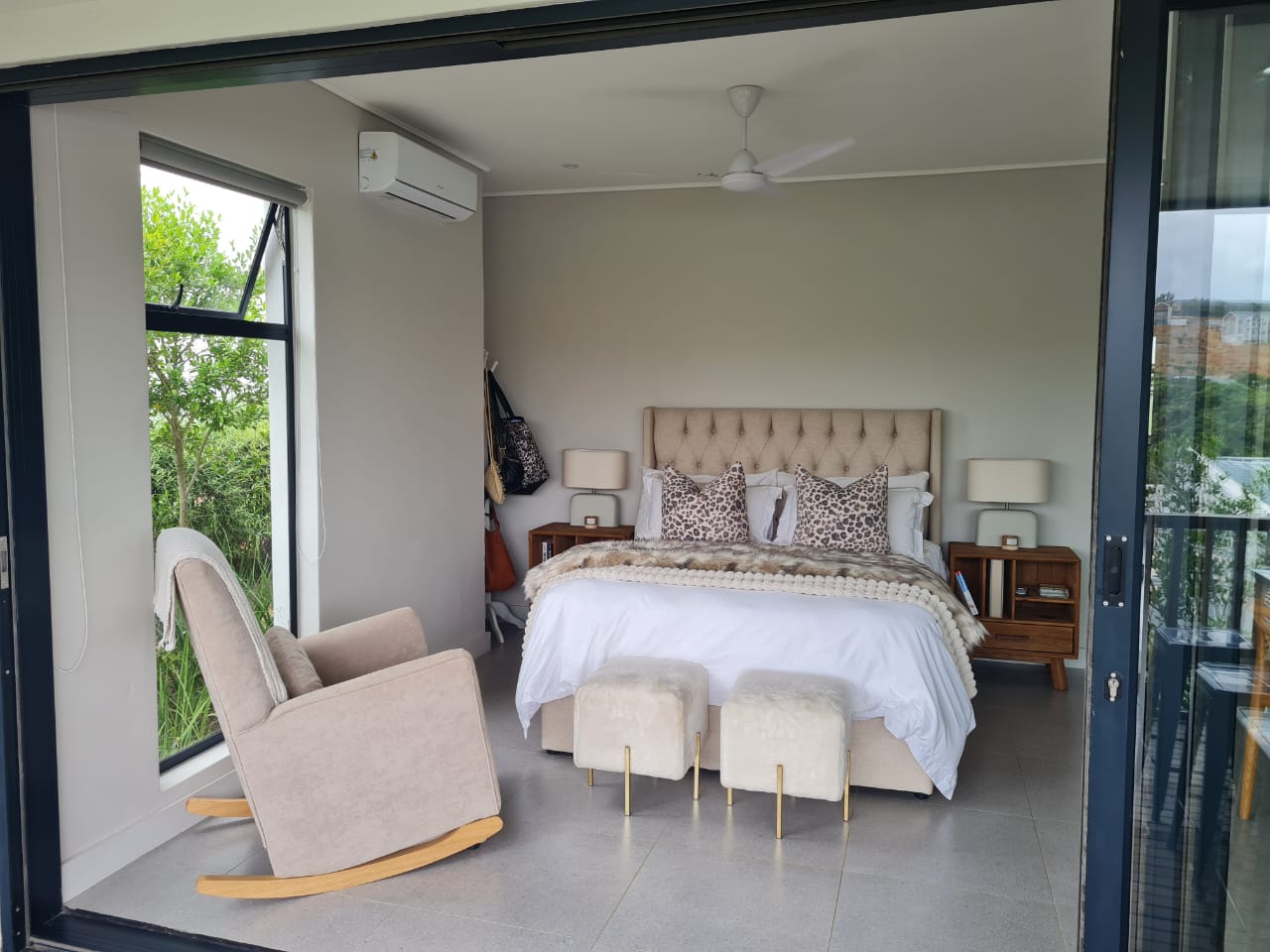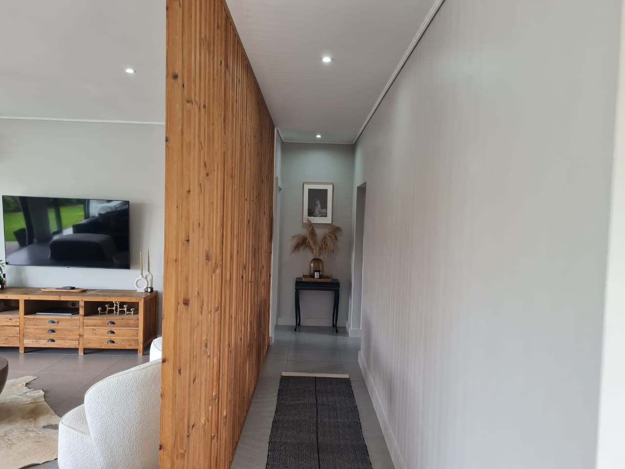 Living spaces open out to a private garden overlooking Zululami’s greenbelt, offering a tranquil natural backdrop and a safe outdoor space for children to play. The home is further enhanced by a solar power system, providing energy efficiency and peace of mind.