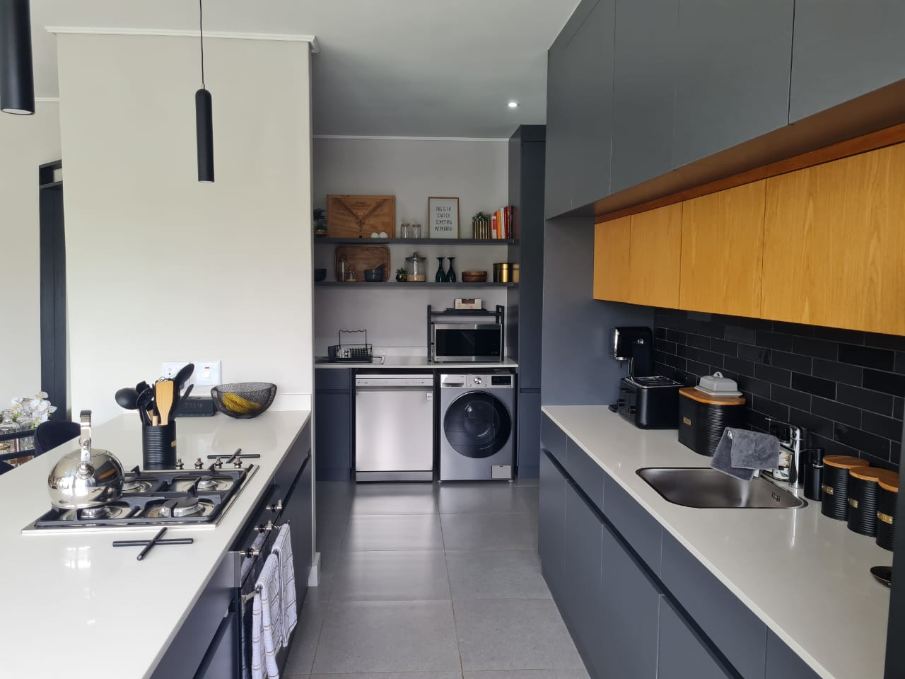 The property boasts generously sized, air-conditioned bedrooms and large, light-filled living areas that create an easy flow for everyday family life. At the heart of the home is a stand-out modern kitchen, designed to impress, with quality finishes, generous workspace and a large separate scullery that comfortably accommodates all appliances — ideal for busy households who value both style and practicality.
