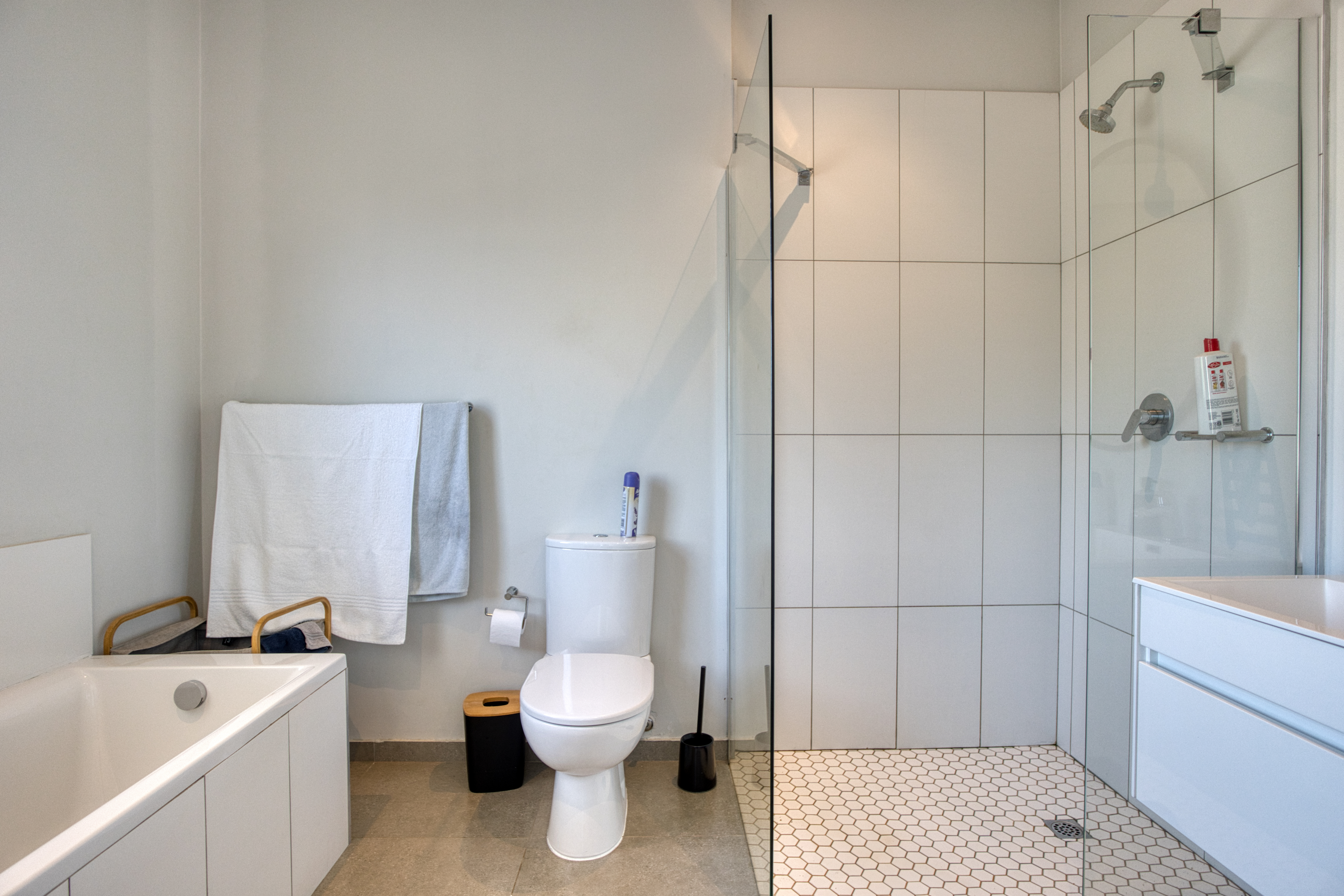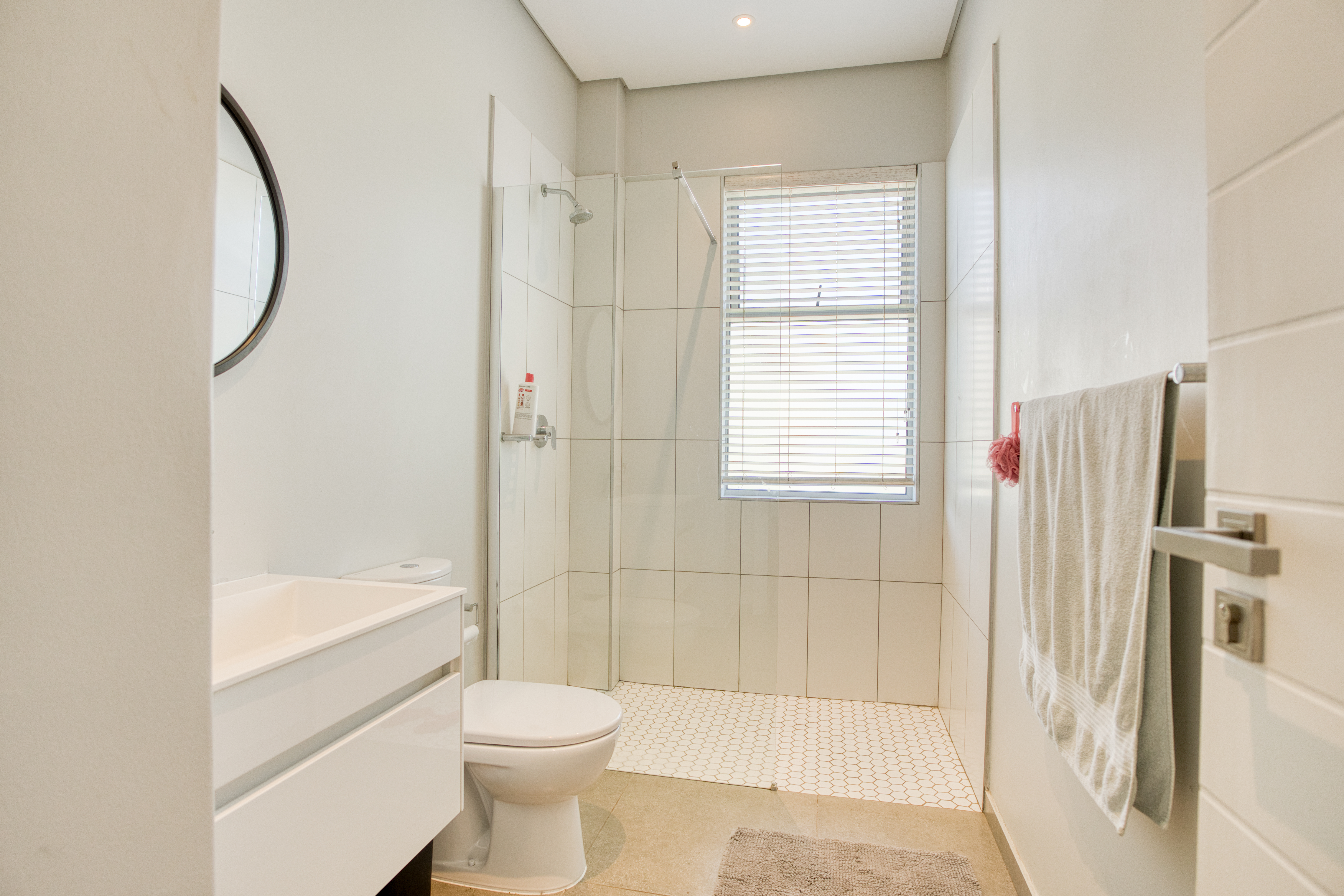 Accommodation includes three generously sized bedrooms with built-in cupboards, complemented by two stylish, modern bathrooms. The layout is both practical and well-balanced, offering privacy and ease of living.