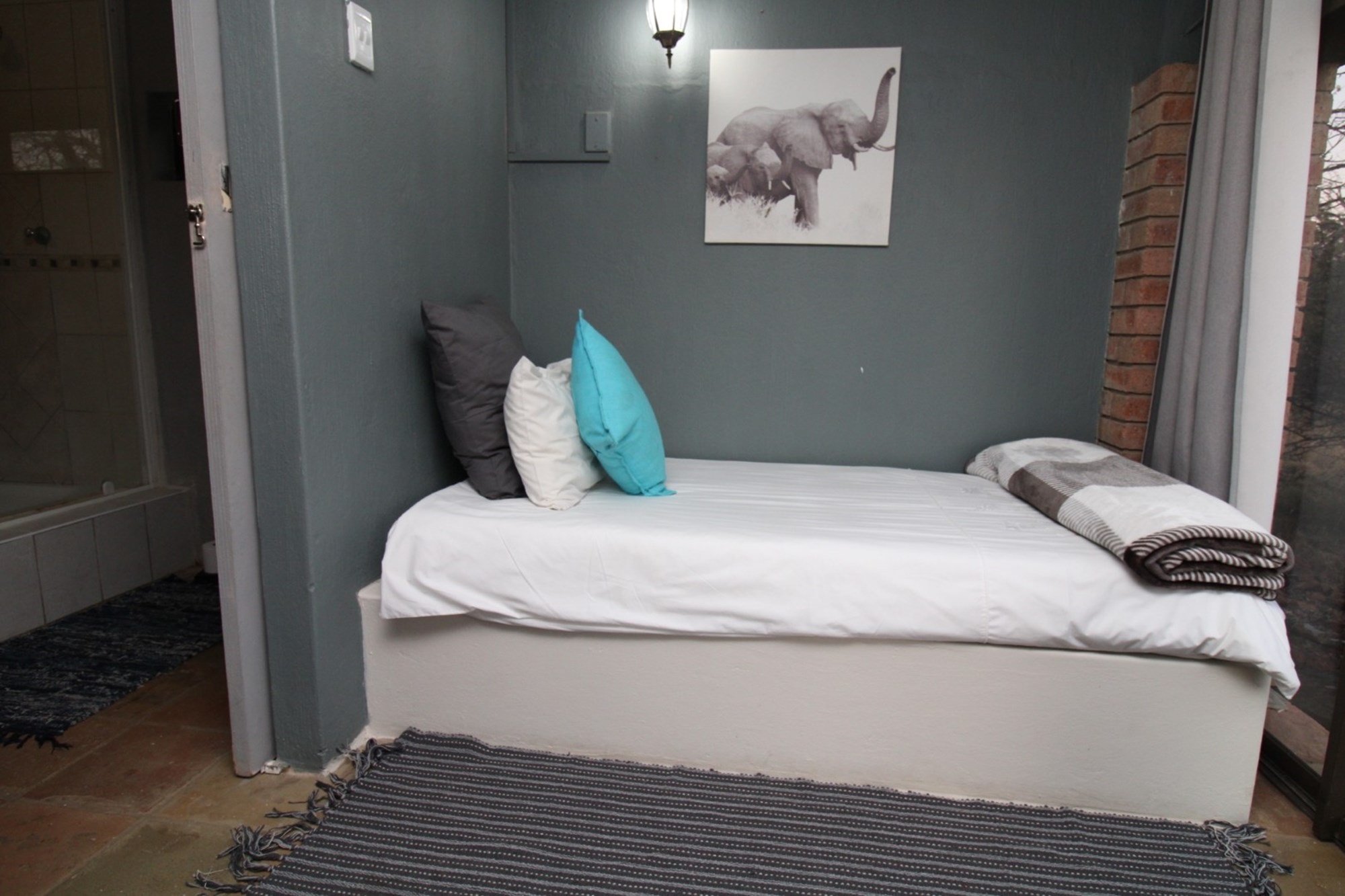 In this cozy flatlet, the open-plan layout maximizes comfort and functionality. A space allows for a double bed with soft lighting, while a built-in single bed—tucked along one wall—adds clever versatility for guests or extra lounging. The en-suite bathroom offers a private retreat that blends efficiency with effortless charm