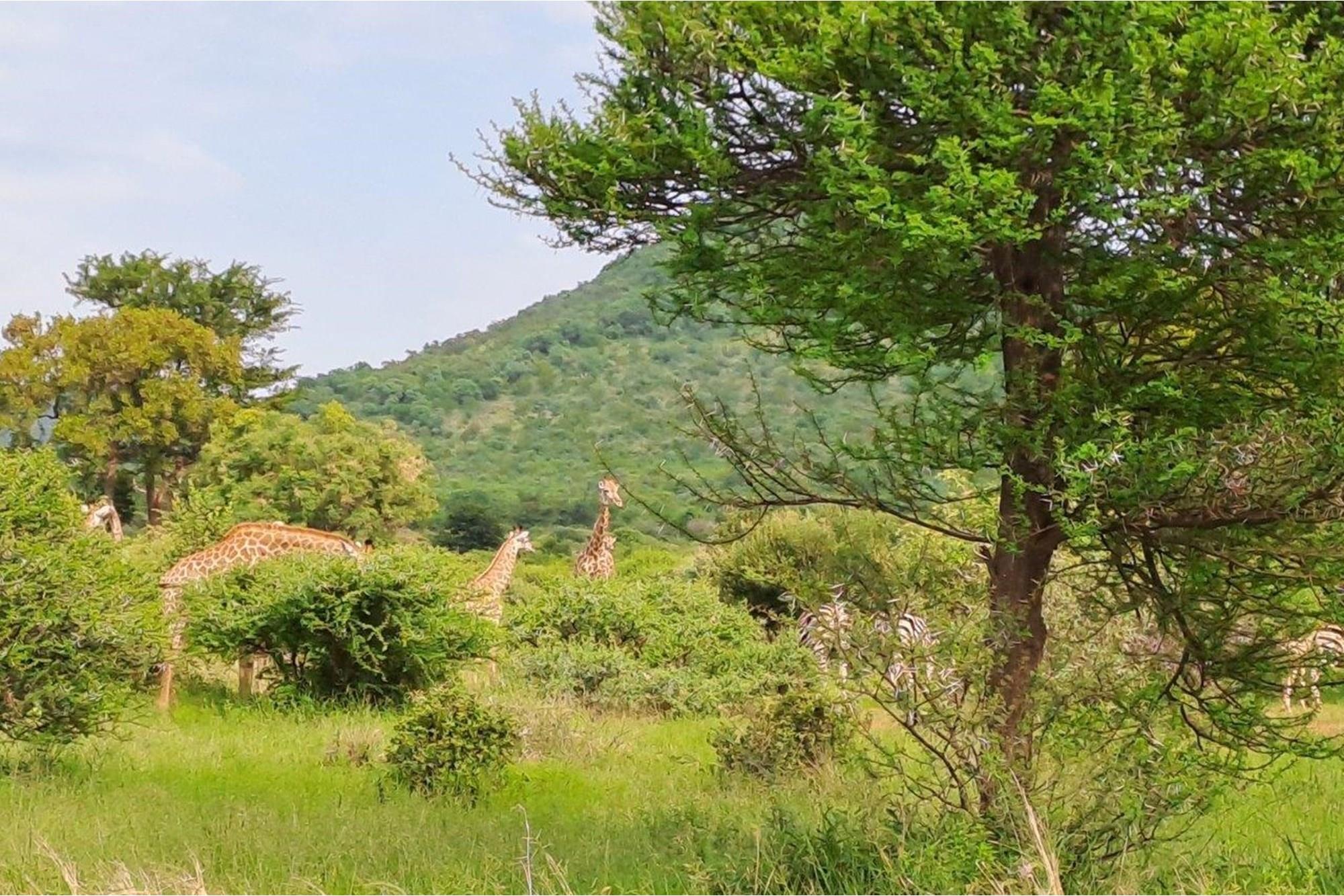 Game species include blue wildebeest, buffalo, bushbuck, baboon, duiker, giraffe, mountain reedbuck, impala, klipspringer, kudu, leopard, nyala, roan antelope, sable antelope, steenbok, waterbuck, warthog, zebra and leopard.