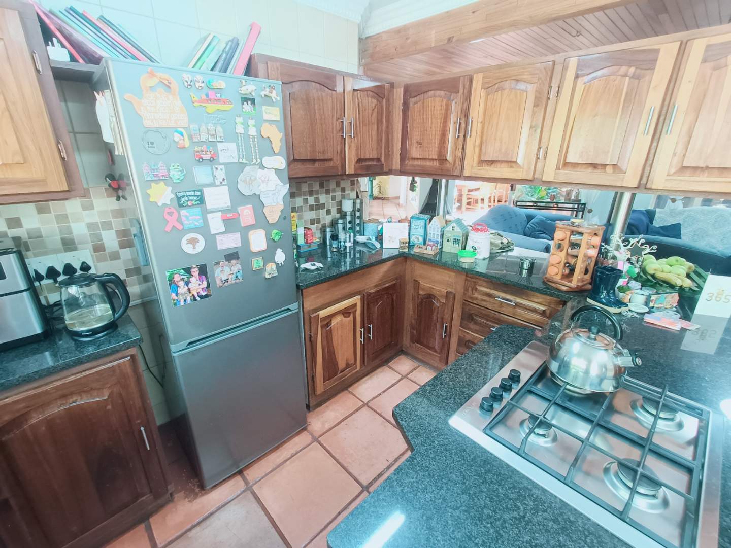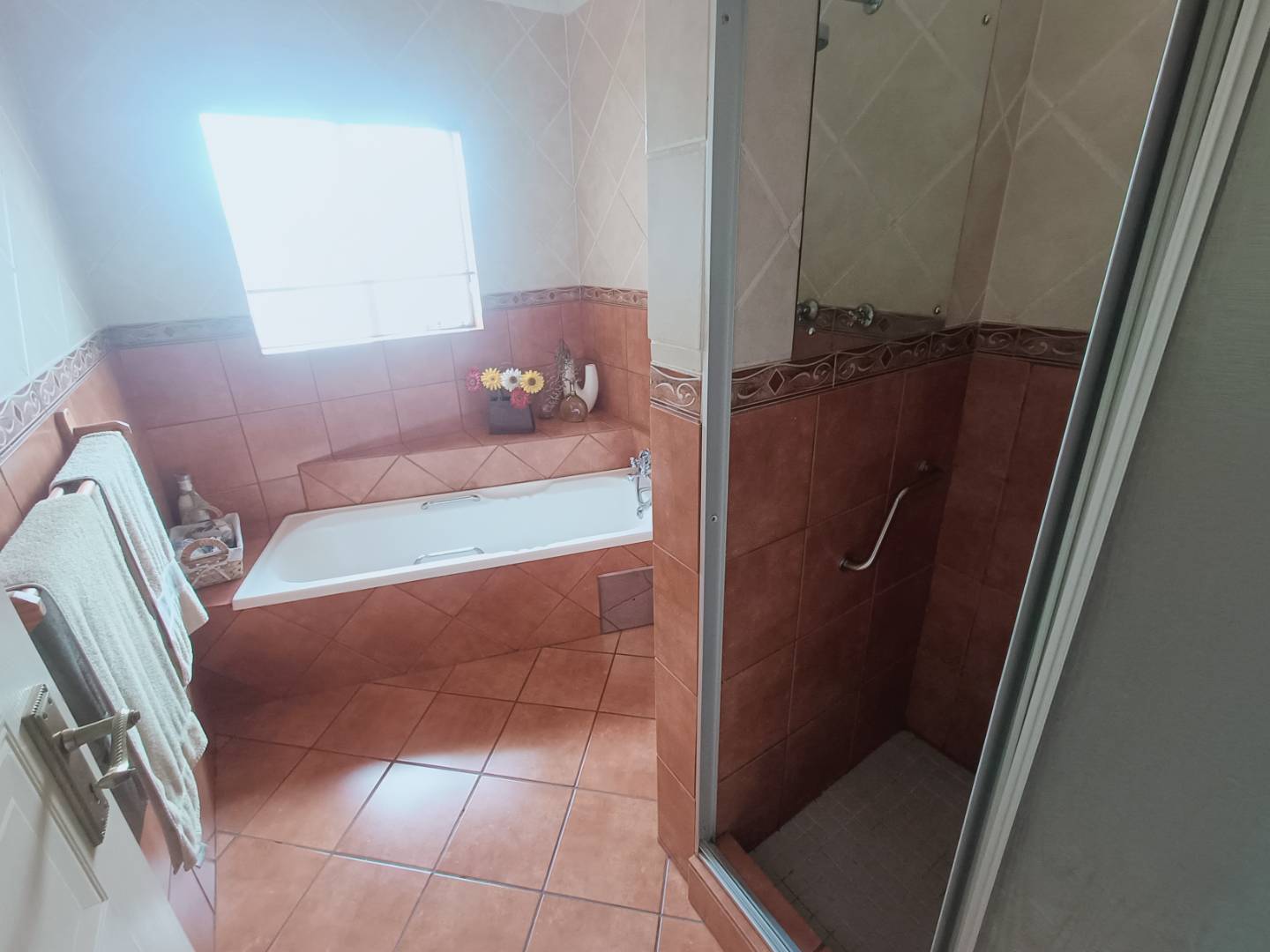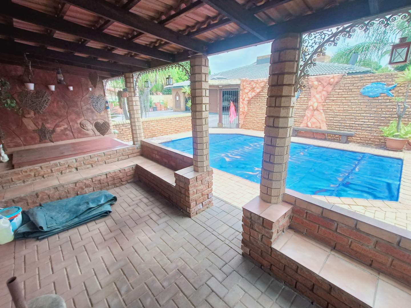 Relax and unwind in the heated pool with an integrated Jacuzzi, all comfortably situated under a charming patio area. This home is equipped with modern energy solutions, including a solar geyser, solar panels with an inverter, and a Jojo water tank, ensuring sustainable living.