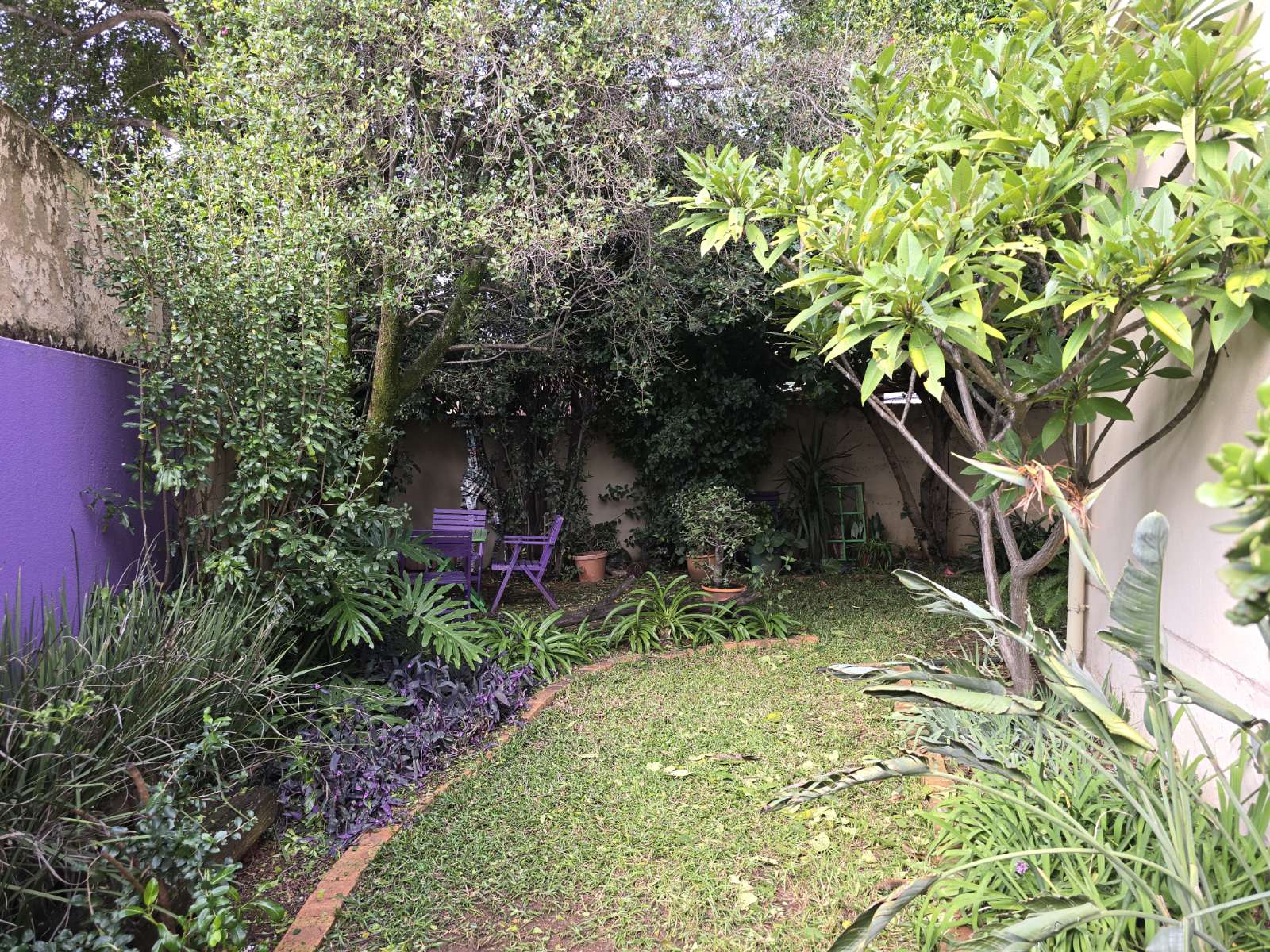 Established garden with water storage tanks