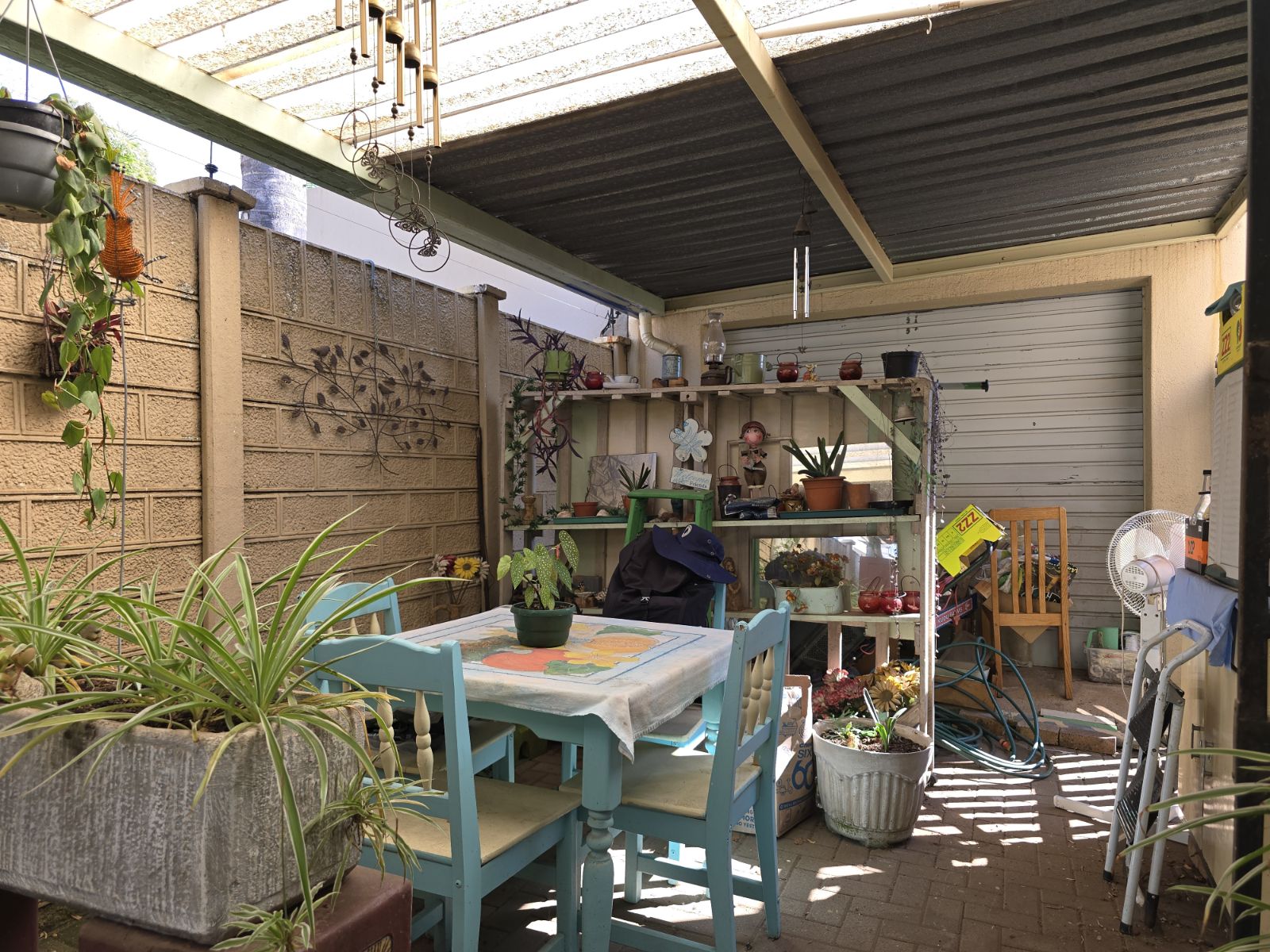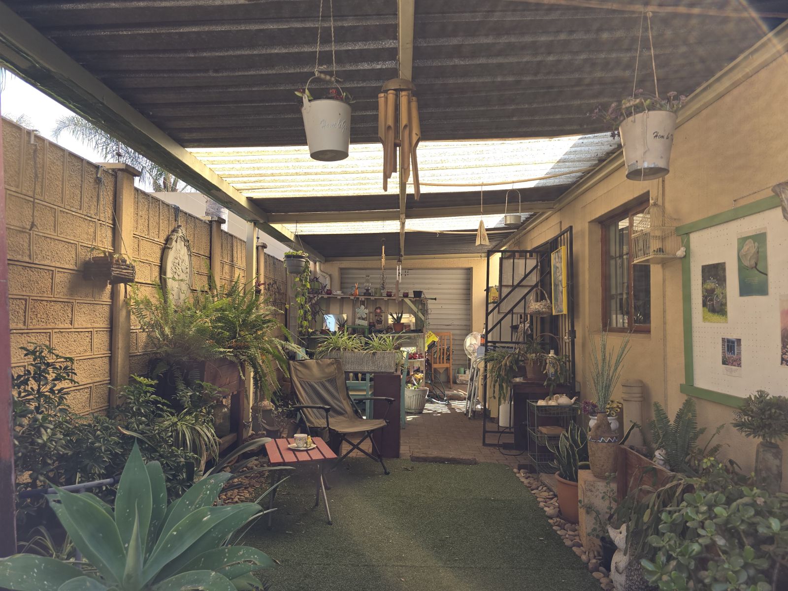 Single garage, with a roll up door leading to a carport in the backyard