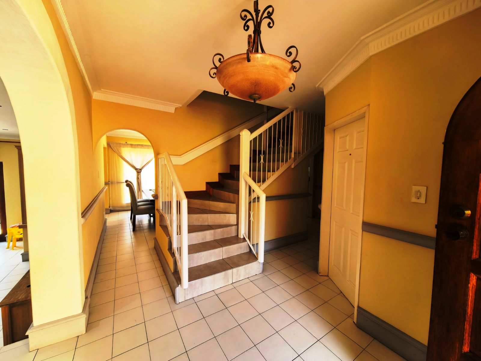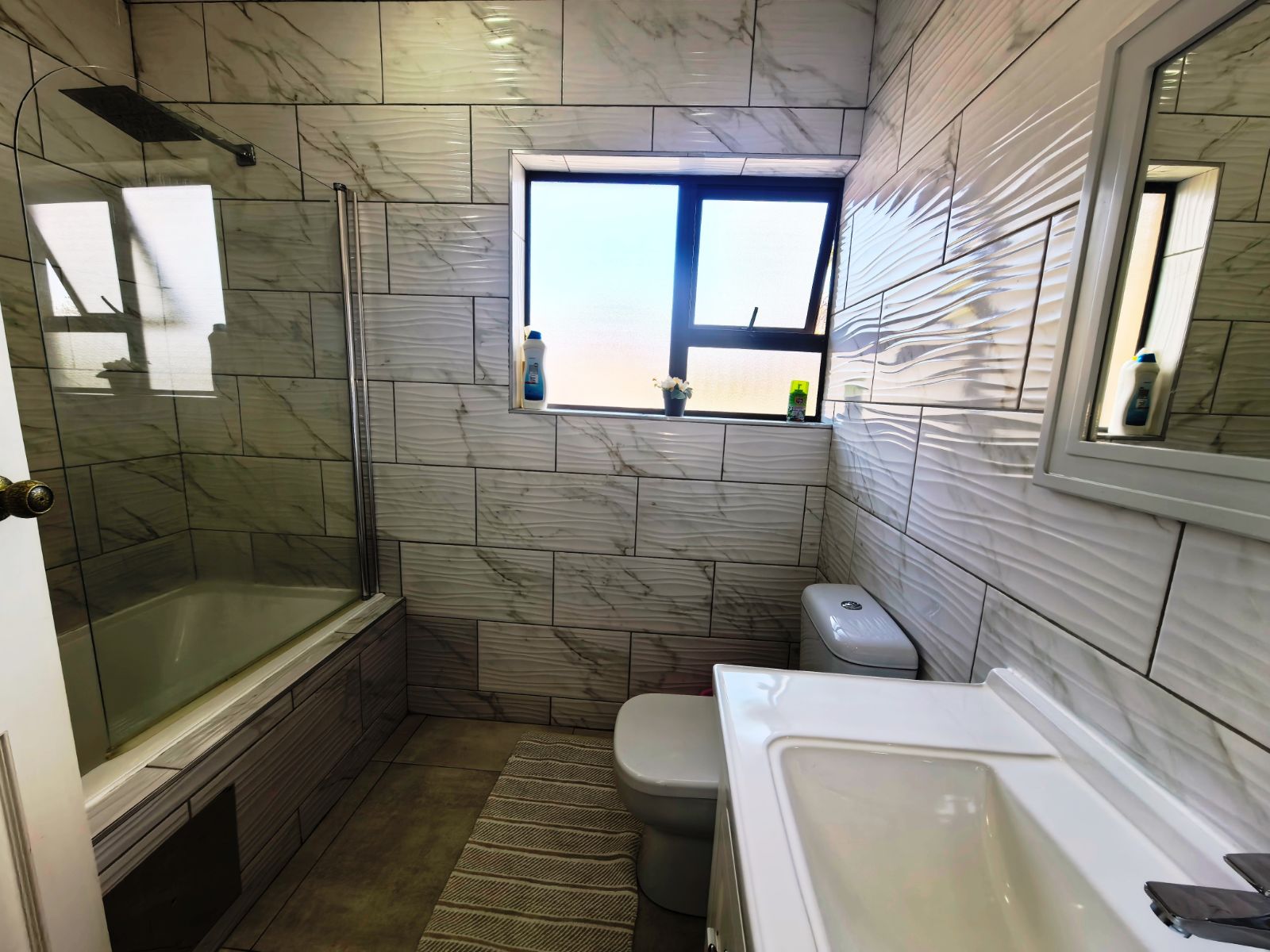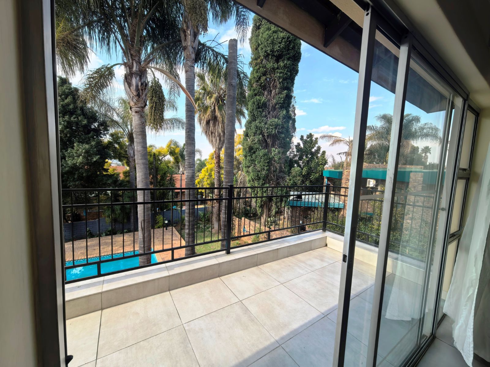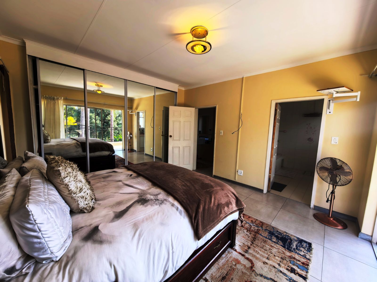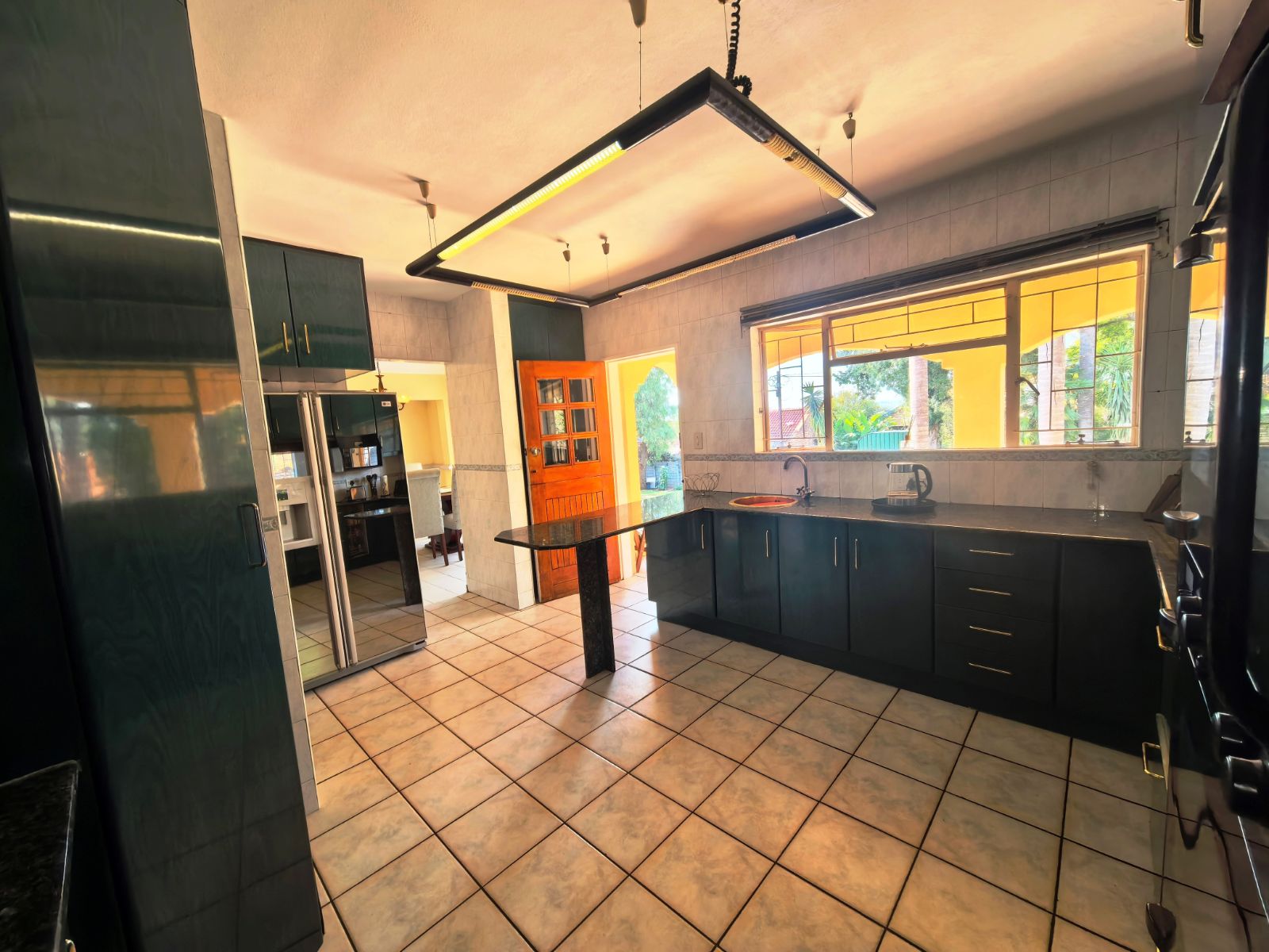 Inside, you are welcomed by a spacious living area that opens onto a covered patio with lovely views of the pool and entertainment area. The home offers three well-appointed living areas, a guest toilet, and a stylish kitchen with granite countertops, a separate scullery, and ample cupboard space. There's also a guest bathroom downstairs, along with direct access from the double garage into the house and additional storage throughout. Upstairs features four generous bedrooms, including a main suite with a full en-suite bathroom and a private balcony overlooking the pool, plus a second full bathroom serving the remaining bedrooms.
