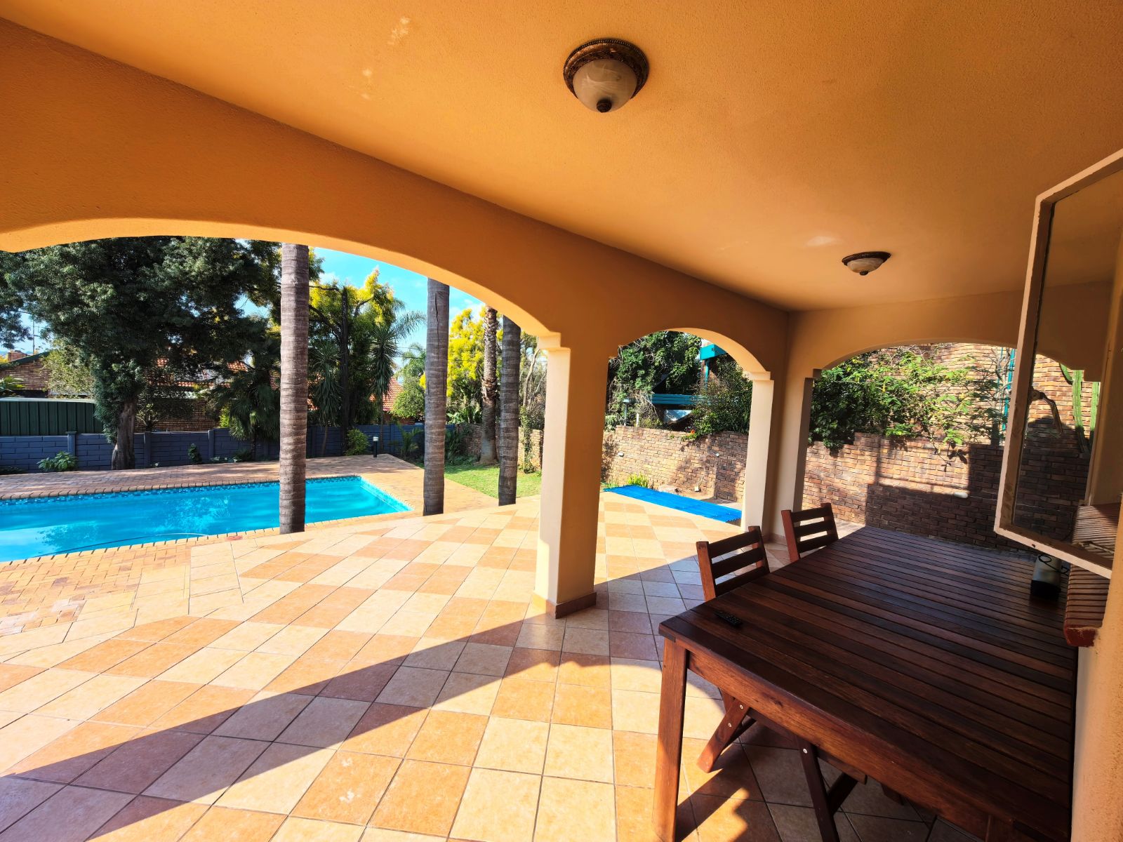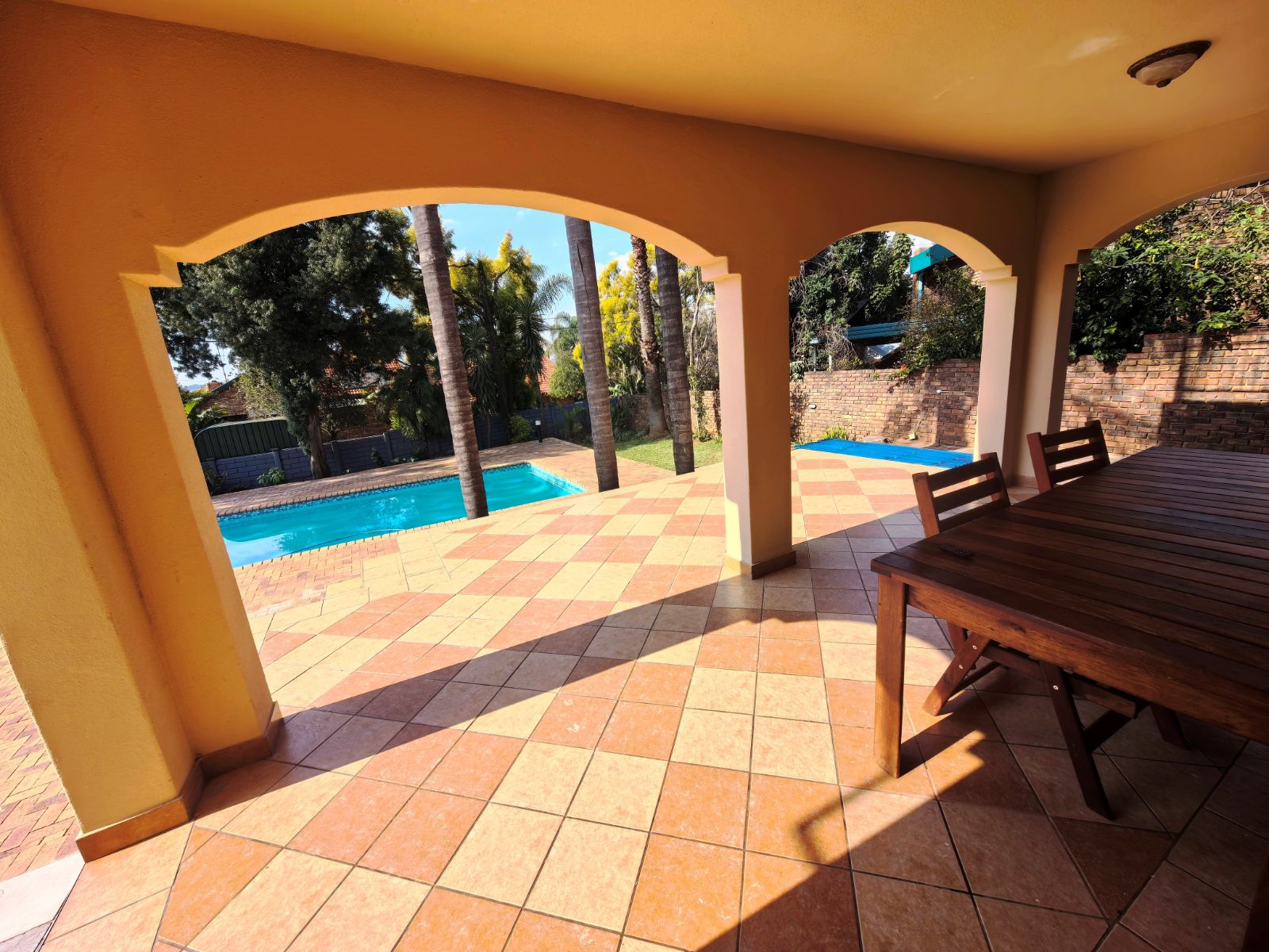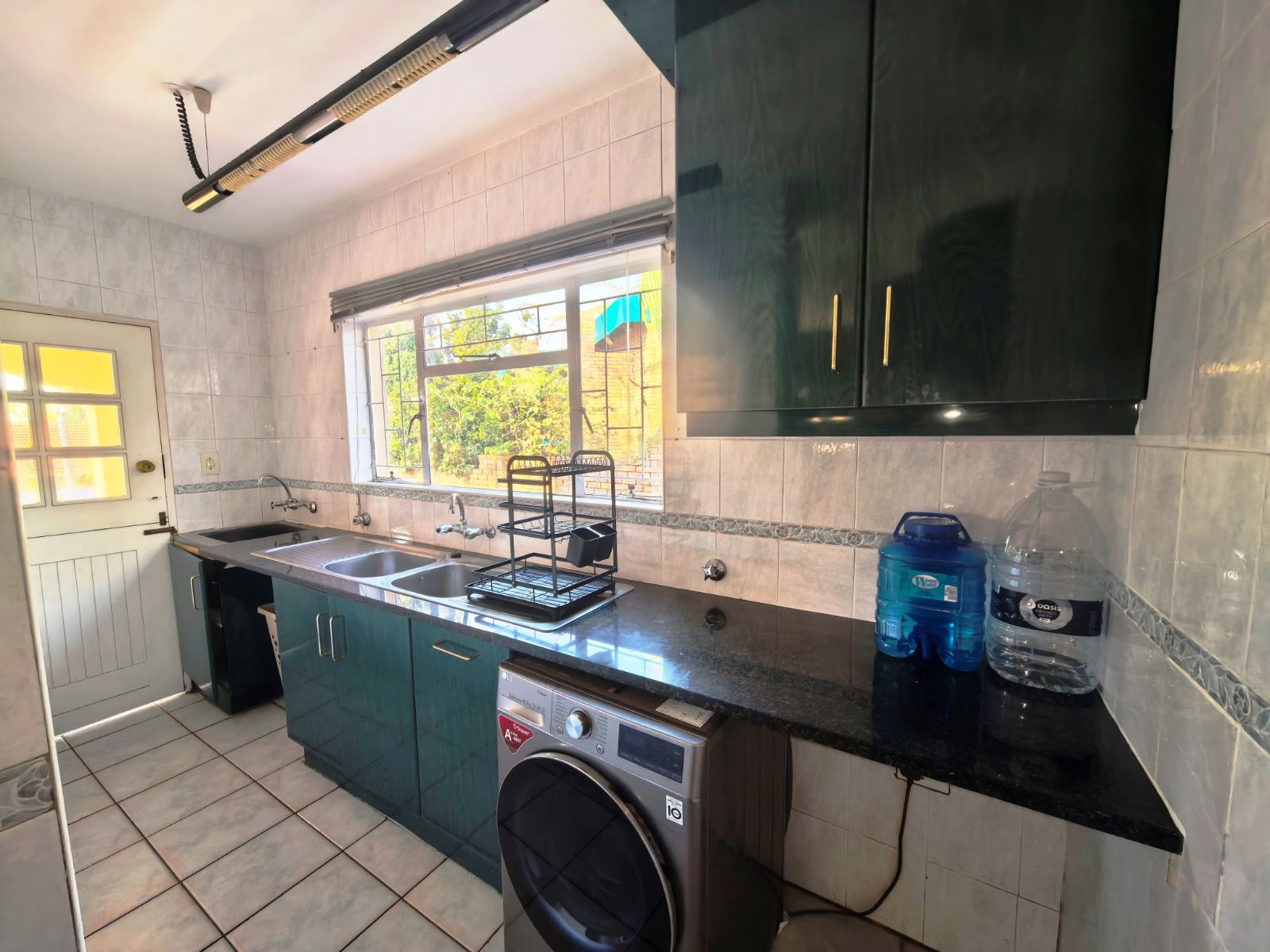 This charming property is located in a popular boomed-off area of Zwartkop, Centurion, offering secure and convenient living close to Centurion CBD, top schools, and with easy access to main roads. One of the standout features of this home is the beautifully maintained garden with a sparkling swimming pool and a thatched lapa, complete with a built-in braai—perfect for entertaining family and friends. The area is not affected by load shedding, ensuring uninterrupted comfort and peace of mind.