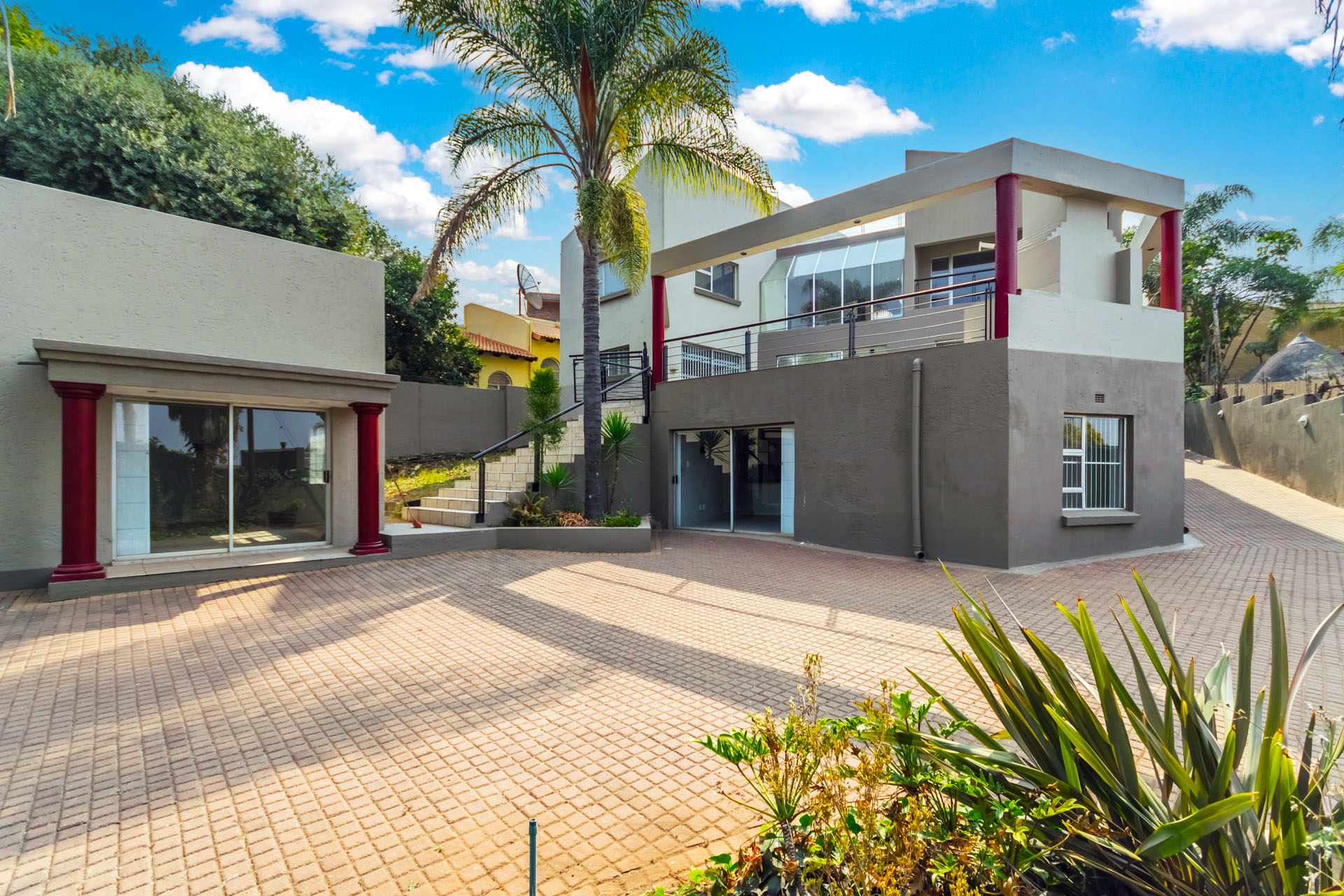 - Ground Level: Entrance hall, cinema room or lounge, second lounge, dining area, kitchen with scullery, guest toilet, and a large patio with built-in braai.