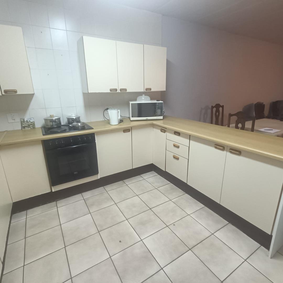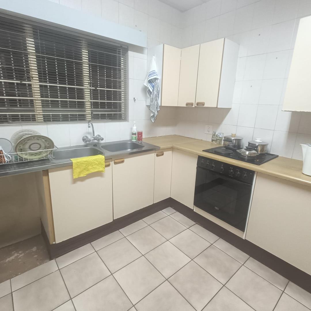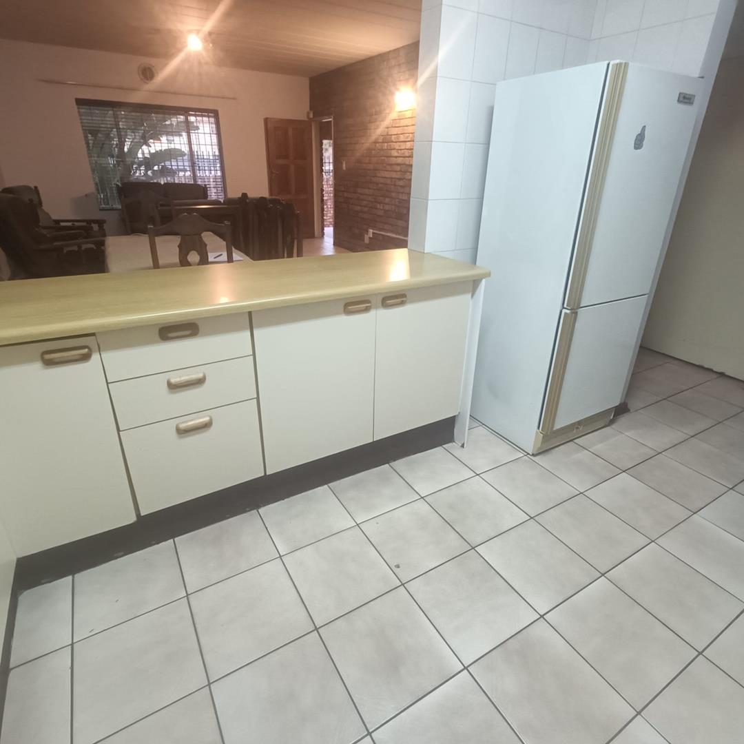 Open plan lounge and dining area with a big kitchen and closed up pantry.
