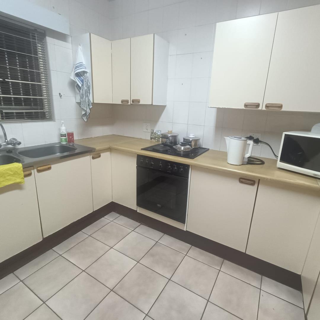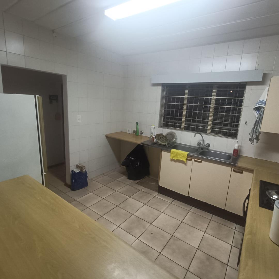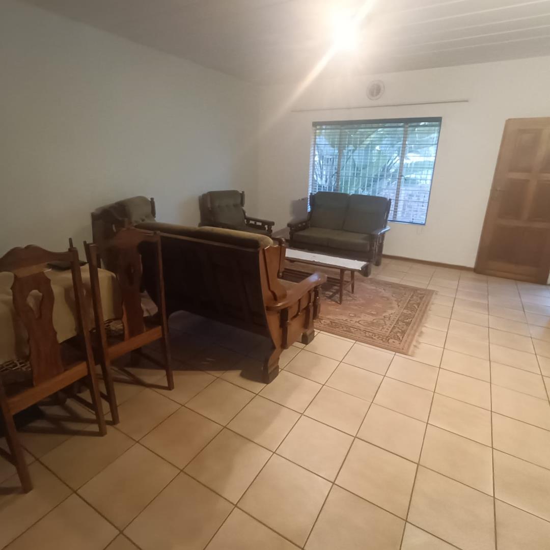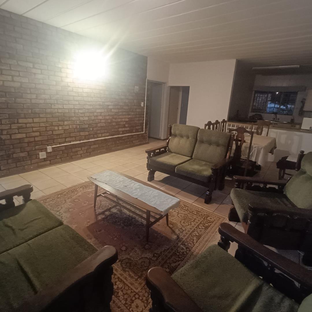 Open plan lounge and dining area with a big kitchen and closed up pantry.
