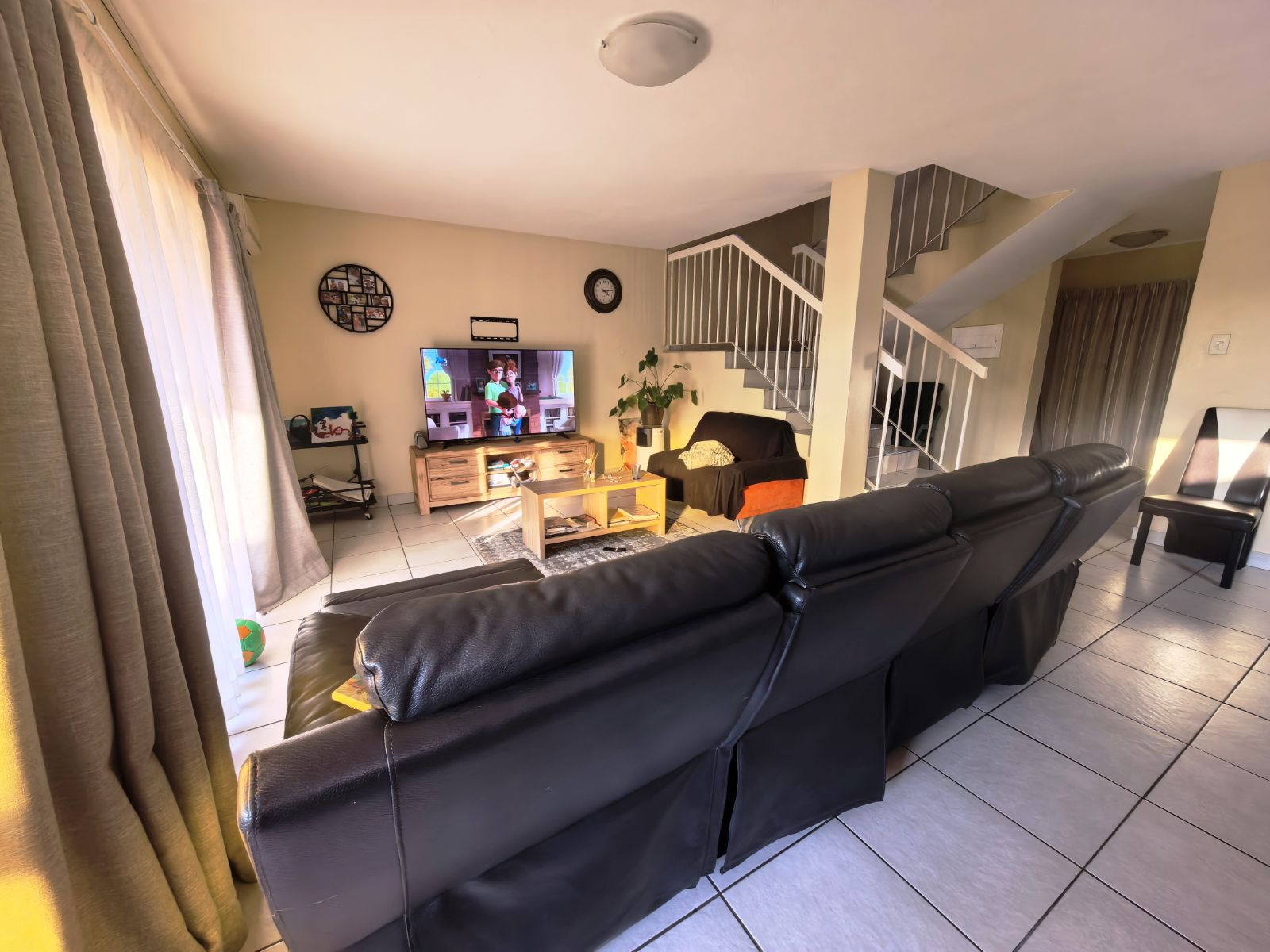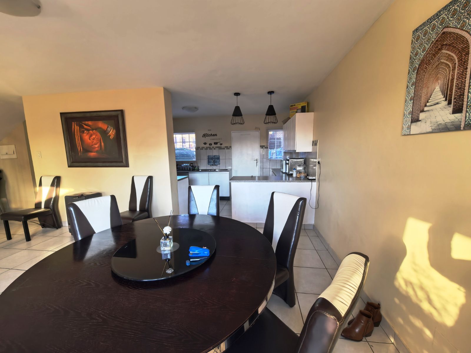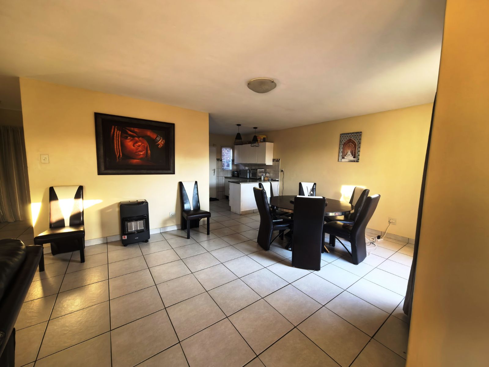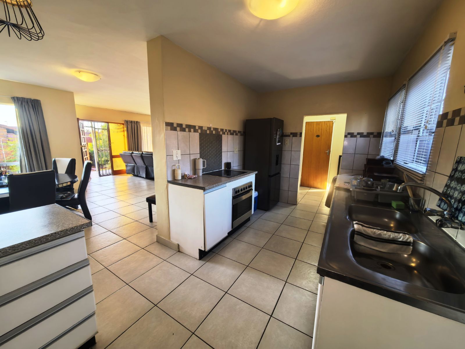 Experience the perfect blend of space and safety in this charming 3-bedroom, 2-bathroom home, ideally located in a sought-after, secure neighborhood. The open-plan kitchen boasts ample cupboard space, making meal prep both practical and enjoyable. Flowing seamlessly from the kitchen, the dining room and lounge create a welcoming space for relaxation or entertaining. Sliding doors open onto a private patio, overlooking a well-maintained garden—your peaceful retreat.