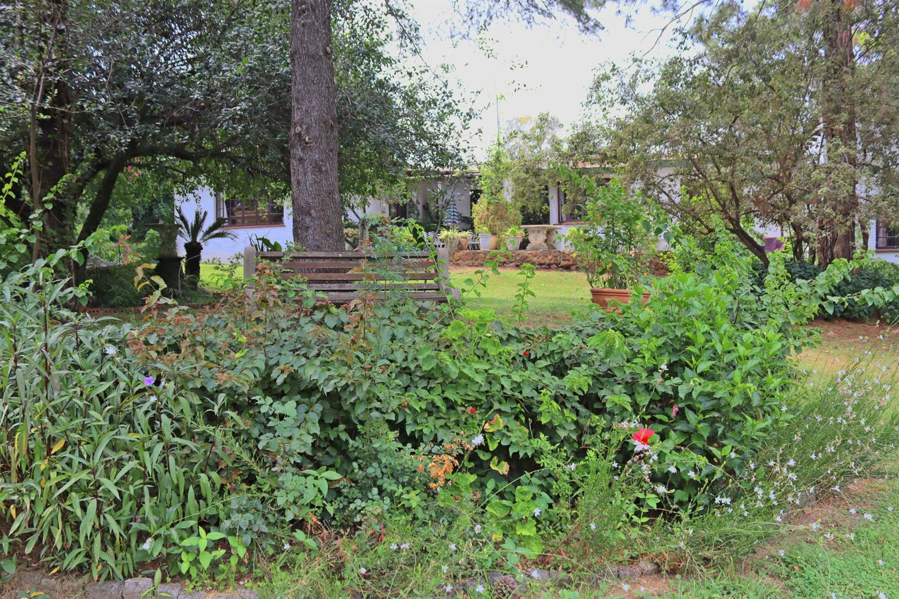 Lush, established gardens surround the homes, creating a tranquil, park-like setting that blends seamlessly with the natural environment. Equestrian enthusiasts will appreciate the stables and well-designed horse-riding facilities, perfectly suited to this countryside setting.