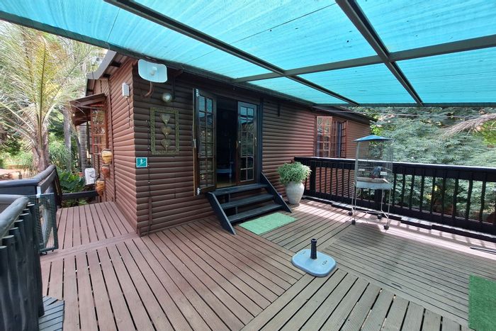 Bushveld retreat in Kranspoort Vakansiedorp — enjoy roaming wildlife, a rustic log home with pool and enclosed braai/jacuzzi, generous living spaces and three bedrooms, two baths.