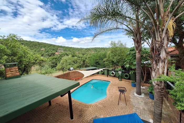 Live bushveld life in Kranspoort Golf Estate with frequent game sightings and panoramic views; furnished 4-bedroom home features solid wood kitchen, covered veranda and separate lapa for entertaining.