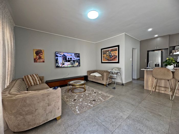 Effortless contemporary living in a coveted Bloemfontein estate, with a gourmet SMEG kitchen overlooking pool and greenbelt, boma for entertaining, five bedrooms, 4.5 baths and double garage.
