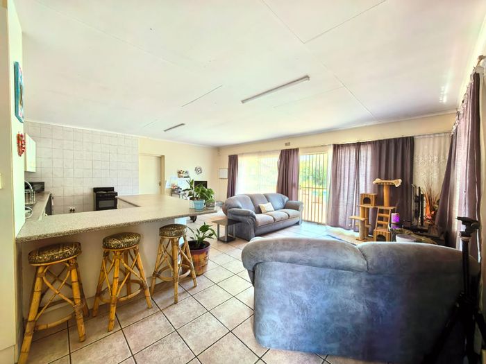 Enjoy family living in Vaalpark, steps from shops, hospital and schools — ground-floor open-plan home with covered patio, built-in braai and communal pool; three bedrooms, two bathrooms.