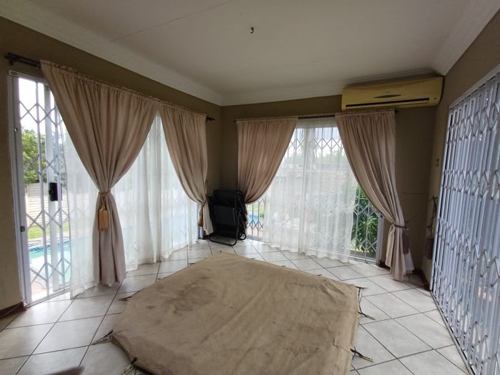 Entertainers' paradise in Sasolburg with lapa and built-in braai, sparkling pool, modern kitchen and aircon — four bedrooms, two bathrooms, extensive covered parking and tandem garage.