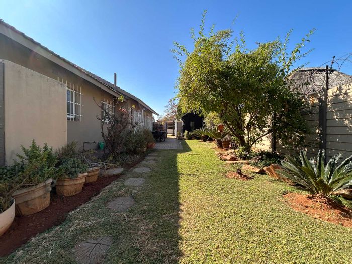 Family-focused lifestyle with quick access to shops, schools and highways in Mayberry Park, Gauteng, featuring a fenced yard with lush garden and double garage; four beds, two baths.