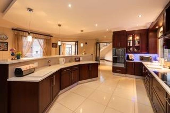 Resort-style living bordering the Nature Reserve in an upmarket security estate, featuring panoramic views, private pool, versatile granny-flat and four en-suite bedrooms with three garages.