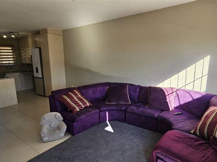 Relaxed family living in Whispering Winds, Newmarket — secure 24-hour complex close to shops, clinics and schools. Entertain on an undercover patio with built-in braai; three beds, two baths, double garage.