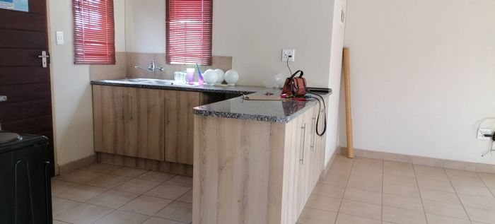 Fresh family living in Palm Ridge Ext 37's growing neighbourhood, this never-occupied home offers an open-plan kitchen and sitting room, three bedrooms, two bathrooms, and double covered parking.