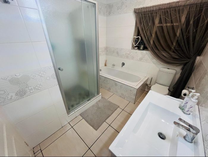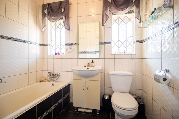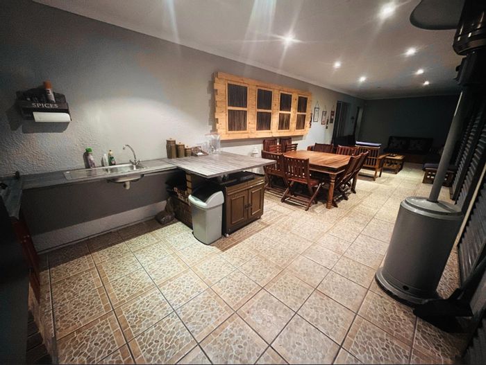 Entertainer's family home in a sought-after investment area, with pool and enclosed built-in braai, upstairs flatlet, modern kitchen and pantry — four bedrooms, two bathrooms, three garages.