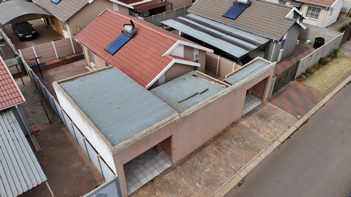 Immediate-occupation family home in peaceful Sky City, close to Johannesburg CBD and Mall of the South. Solar geyser, outside room and secure pre-fab wall. 3 beds, 2 baths.