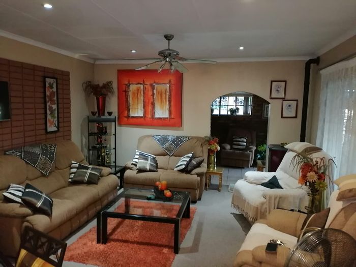 Perfect for entertaining in family-friendly Dalpark Ext 1 — thatch lapa with built-in braai and bar, pool and yard; main home has four bedrooms and two flatlets.