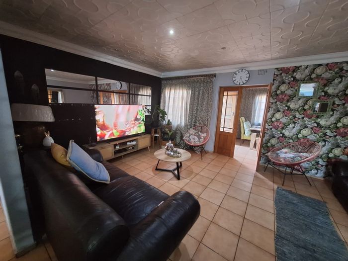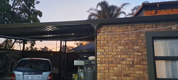 Entertainer's haven with three lapas and built-in braai, rock-feature pool, two entertainment rooms and exposed beams, fully paved with alarm and electric fence. 3 beds, 2 baths, covered parking.