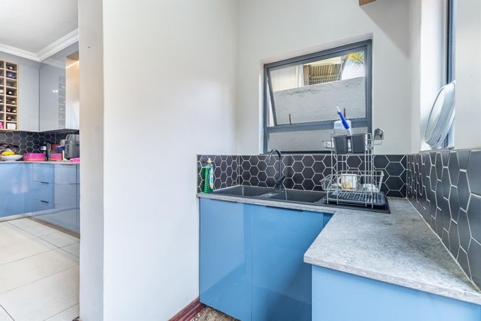 Entertain effortlessly in Centurion Golf Estate’s relaxed family setting, with a covered patio and built-in braai, three bedrooms, two-and-a-half bathrooms, and double garage.