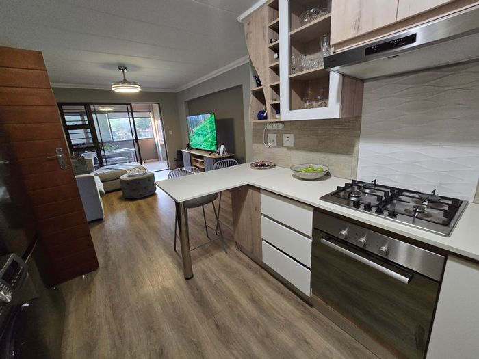 Golf-course lifestyle in Cullinan — move-in ready first-floor, fully furnished townhouse with covered entertainment patio and built-in braai, open-plan living and double carport.