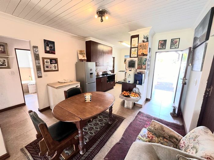 Tranquil Cullinan family home with expansive garden edged by banana trees, sunny patio and large open-plan kitchen/dining. Includes outside room and generous parking; four bedrooms, two bathrooms.