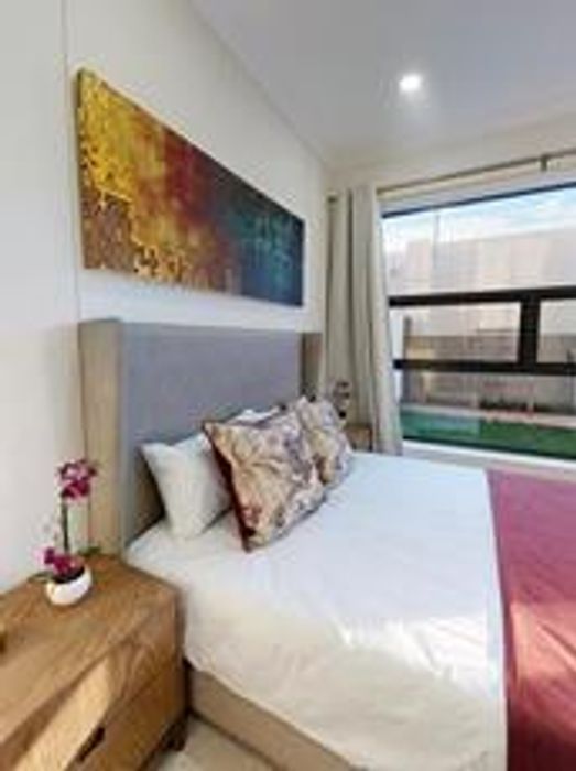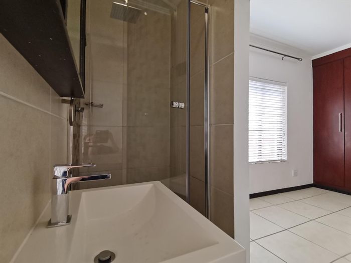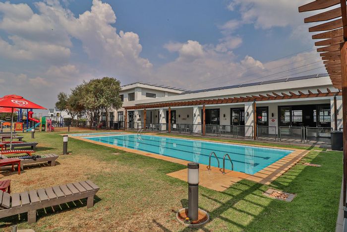 Contemporary living near Greenstone Shopping Centre and Modderfontein Nature Reserve, with a pool, putt-putt course and pet-friendly gardens — two bedrooms, two bathrooms, double garage.