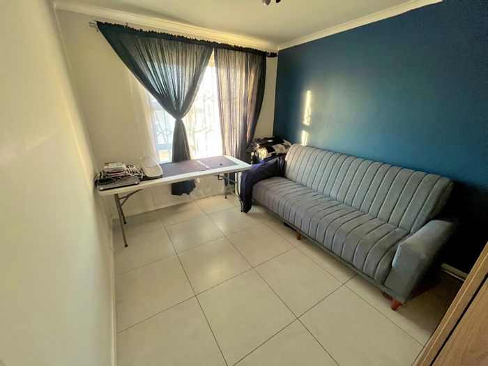 Relaxed indoor-outdoor living in Red Ivory Lane, steps from Greenstone Mall and Modderfontein Nature Reserve. Private garden with covered patio and built-in gas braai; three bedrooms, two bathrooms.