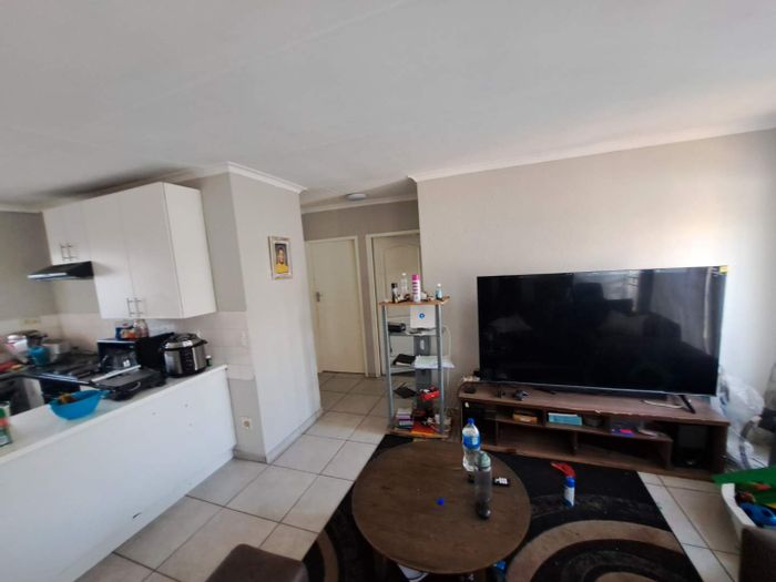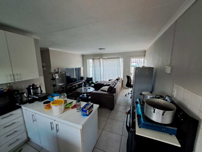2 bedroom, 1 bathroom property with open plan kitchen, lounge, 1 covered carport, and landscaped garden.
