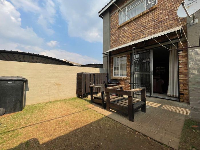 Sun-drenched, low-maintenance living in the heart of Birchleigh — neat first-floor townhouse with private covered patio and built-in braai, two bedrooms, one bath and covered parking.