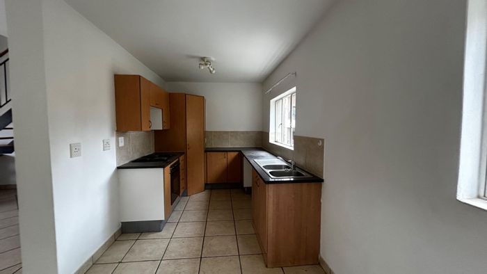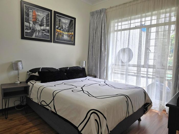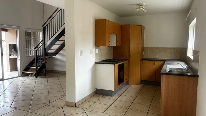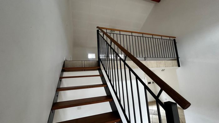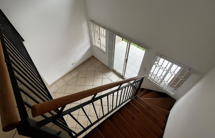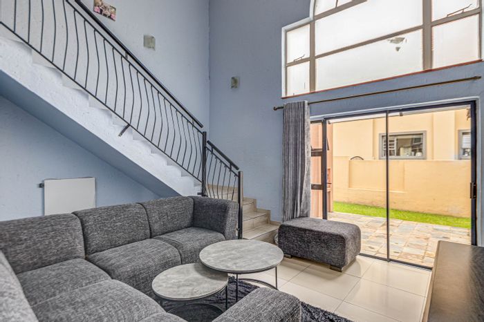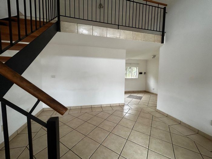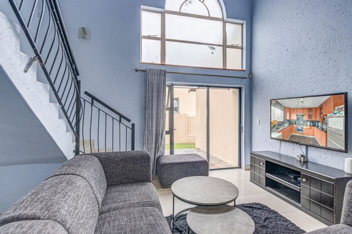 Enjoy secure, convenient urban living within walking distance of shops, schools and the Gautrain bus. Upstairs open-plan lounge/kitchen, two bedrooms, full bathroom and 24-hour security.