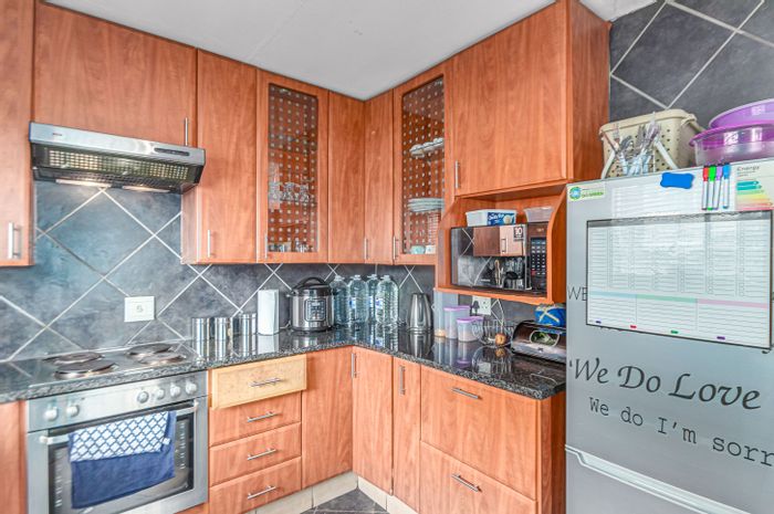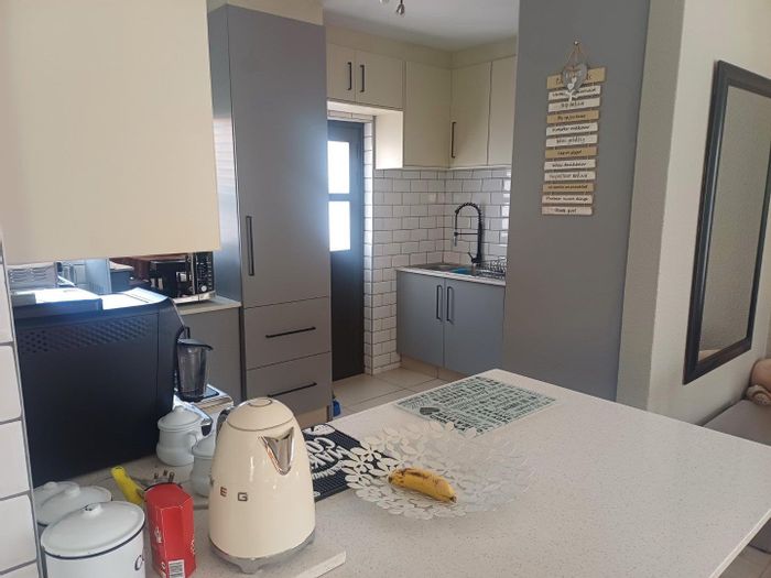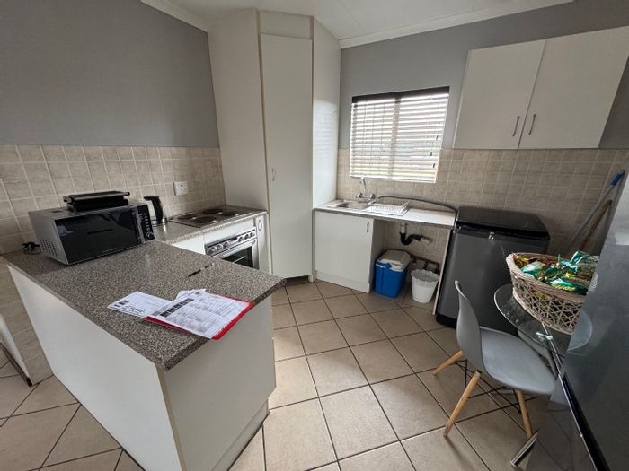 Easy, secure starter living in Glen Marais, steps from shops, schools and churches. Functional kitchen with pantry, electric-fenced complex and on-site guard. Two bedrooms, one bathroom, garage plus carport.