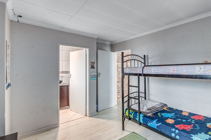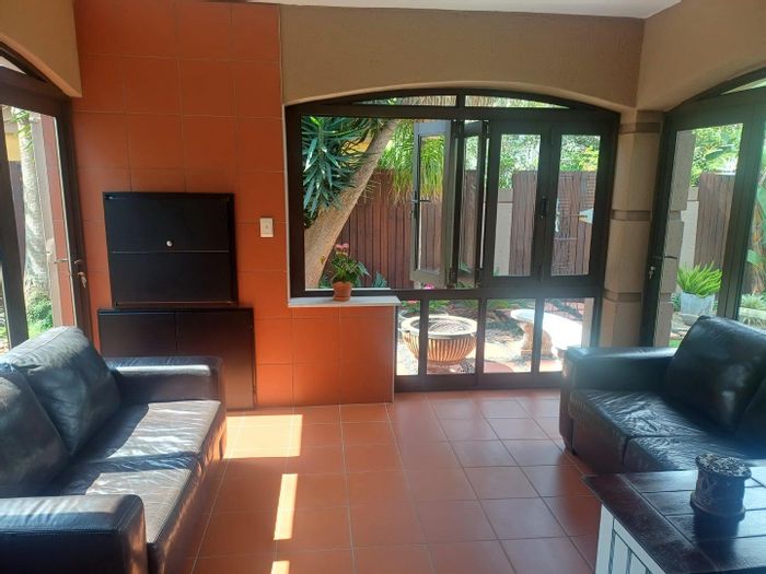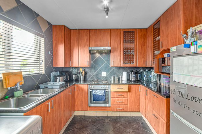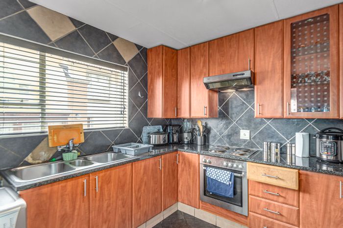 Entertainer's lock-up-and-go living in the heart of Kempton Park, secure complex — seamless indoor-outdoor flow with enclosed patio and built-in braai opening to landscaped garden; three bedrooms, double garage.