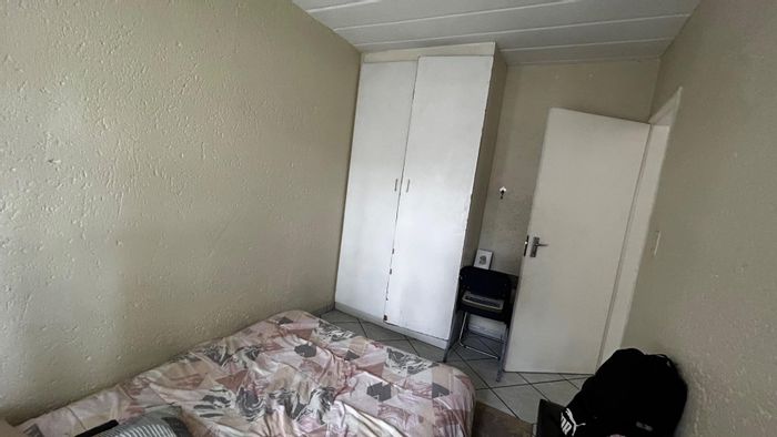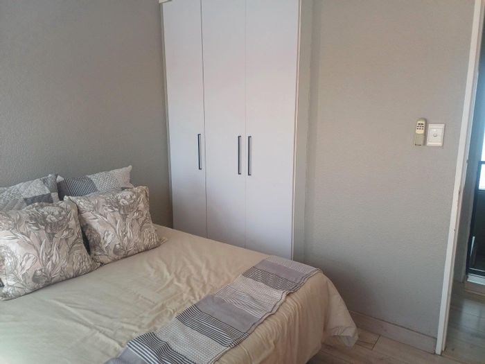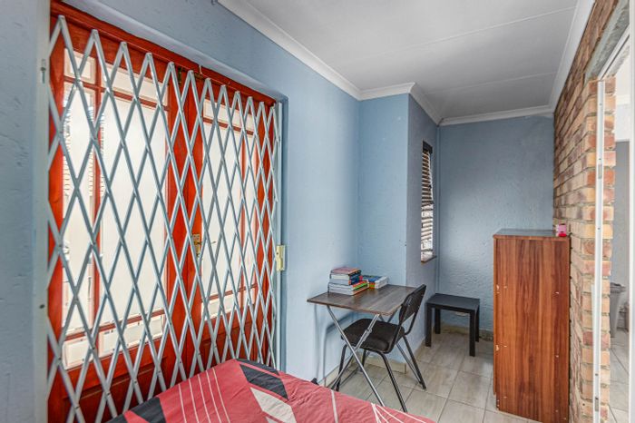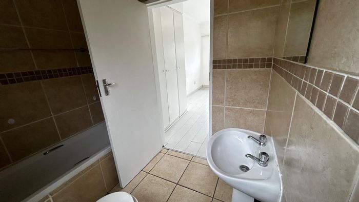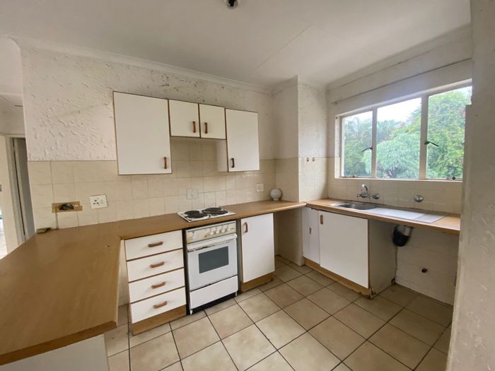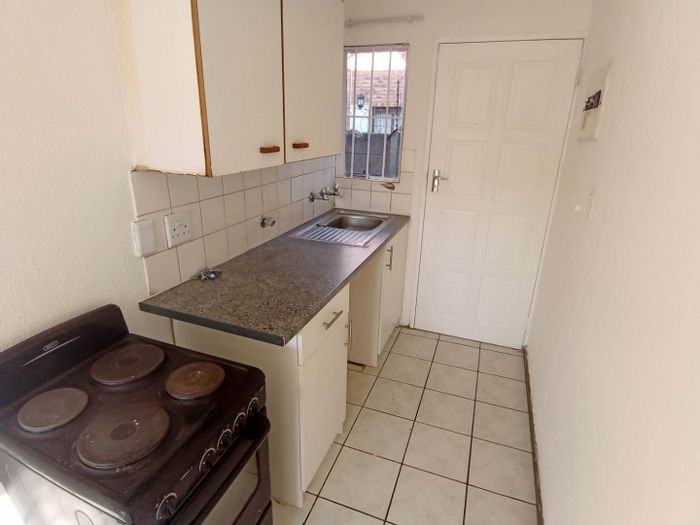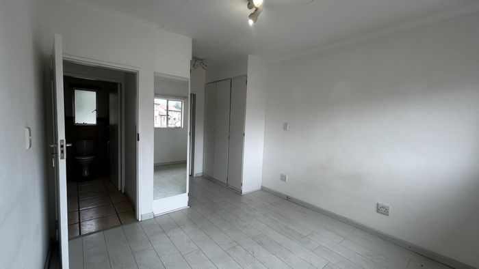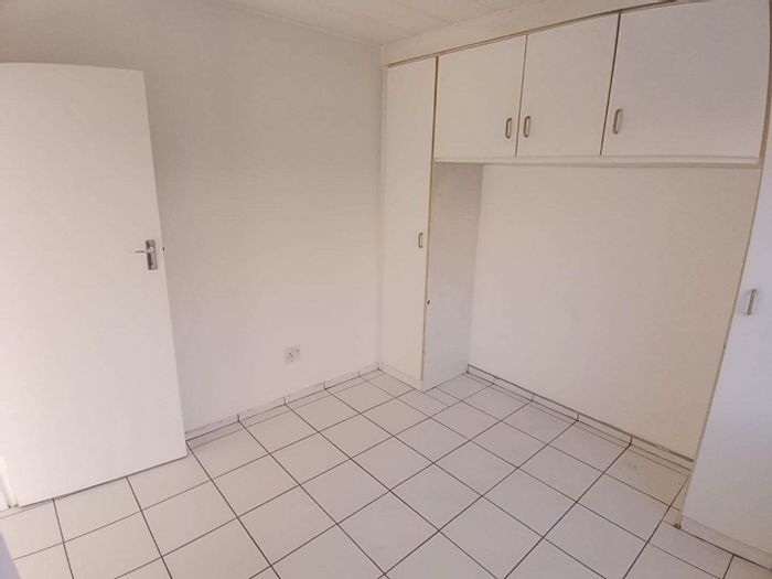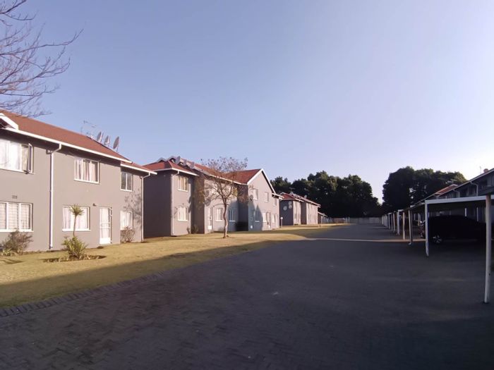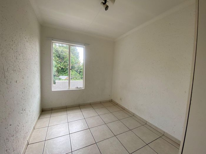 Commuter-friendly living steps from the Gautrain bus route, in a secure complex with 24-hour guard and a private spacious garden; neat kitchen, two bedrooms, one bathroom, covered parking.
