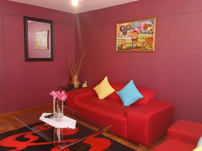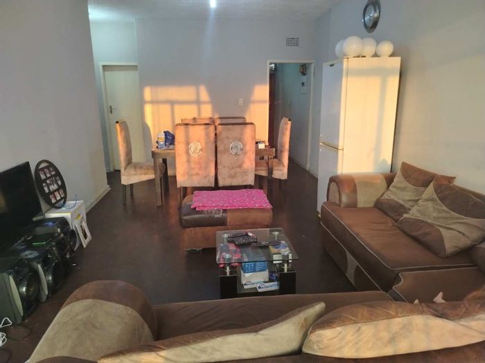 Effortless commuter living near OR Tambo with quick access to shopping centres and freeway; spacious 256 m² flat offers sunny living areas, two bedrooms, one bath, and two covered parking.