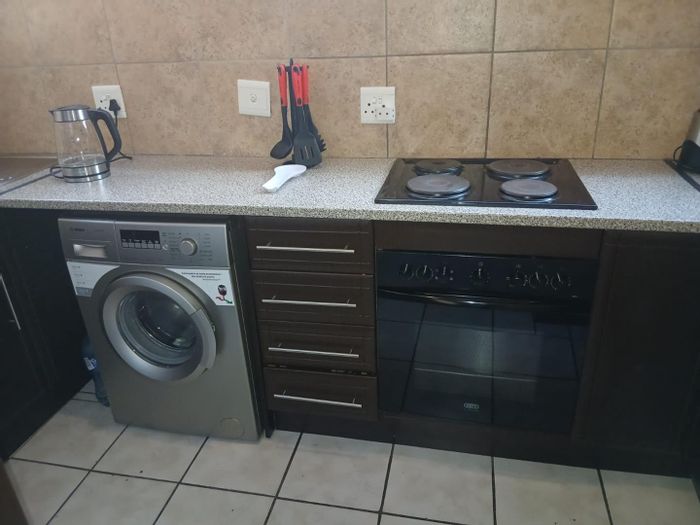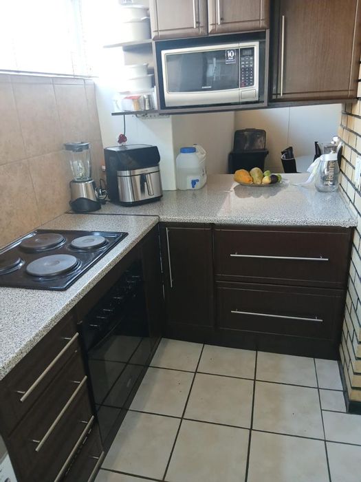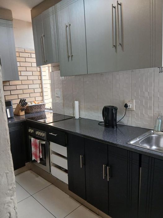 Secure, affordable living in Villa Dean, Kempton Park — walk to Arwyp Hospital and Festival Mall, 24-hour security, prepaid utilities, lock-up garage; two bedrooms, one bath.