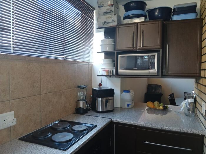 Enjoy low-maintenance apartment living in a peaceful complex with easy access to local amenities; tiled interiors and ample kitchen cupboards, pre-paid electricity included. One bedroom, one bathroom, secure parking.