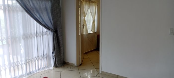 Secure ground-floor living near Norkem Corner Shopping Centre — open-plan lounge, small private garden, communal pool, king-size main bedroom and covered carport for convenience.
